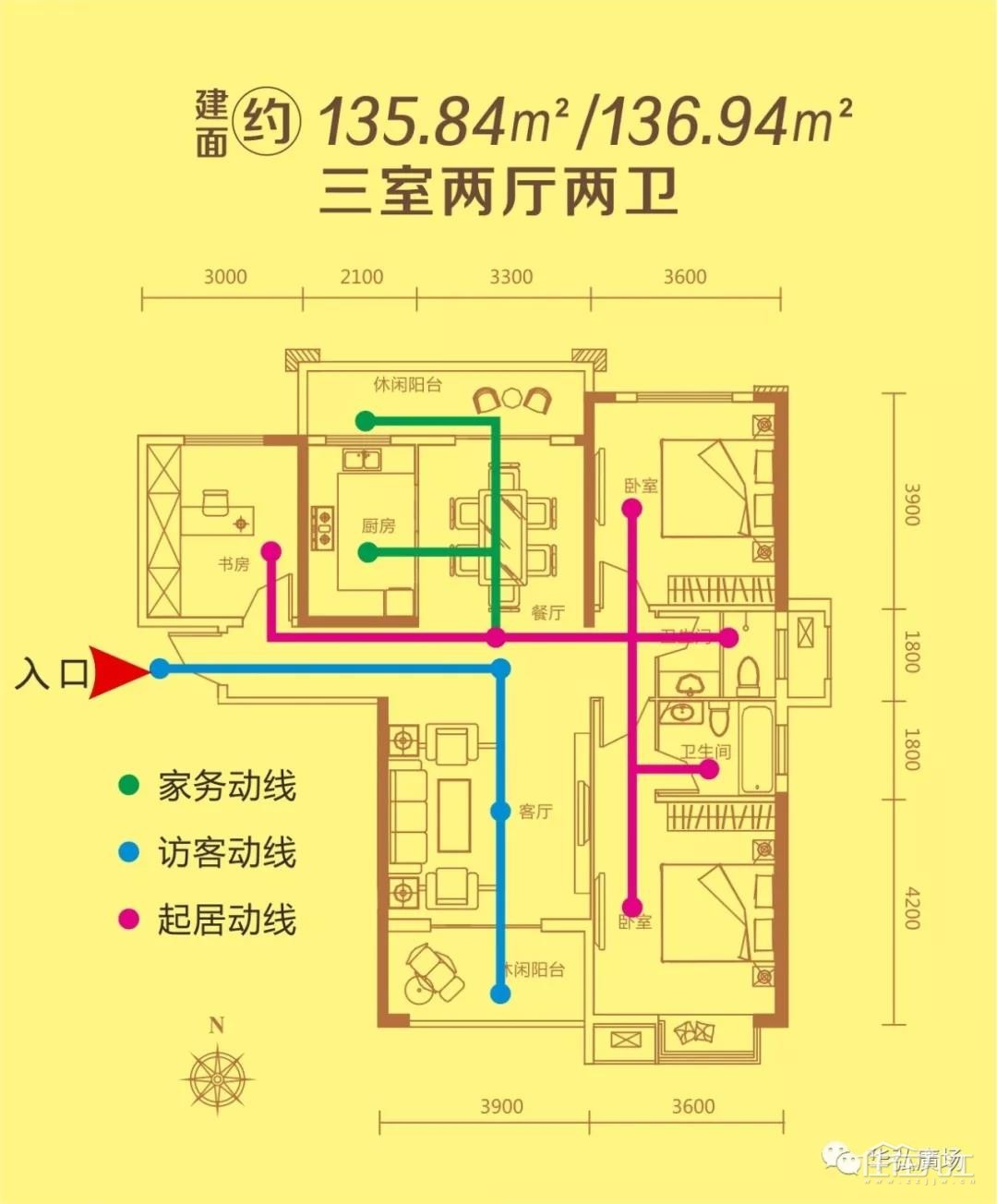 • 建面约135.84㎡/136.94㎡三室两厅两卫