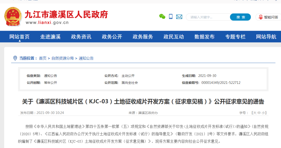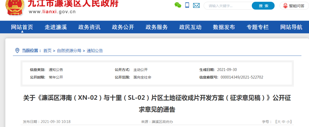 关于《濂溪区浔南(XN-02)与十里(SL-02)片区土地征收成片开发方案(征求意见稿)》公开征求意见的通告