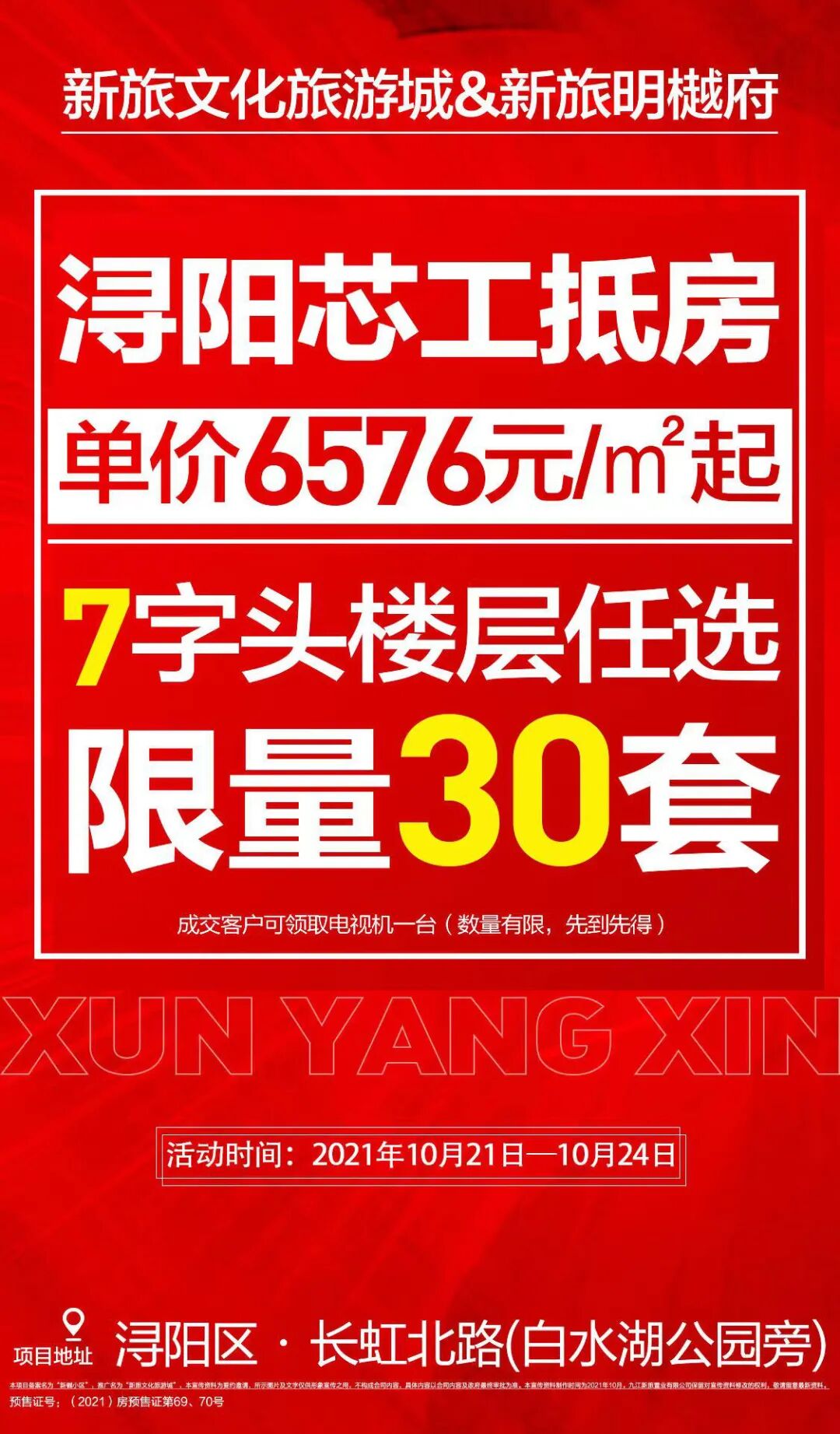 10月21日-24日,新旅明樾府、新旅文化旅游城工抵价6576元/㎡起、7字头楼层任选,成交客户可领取电视机一台(数量有限、先到先得)