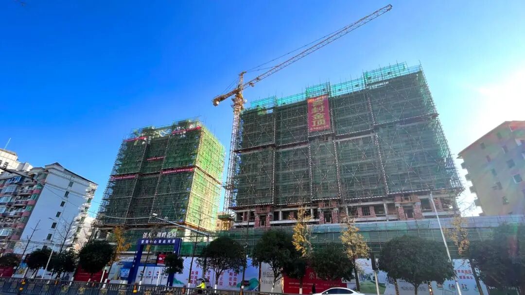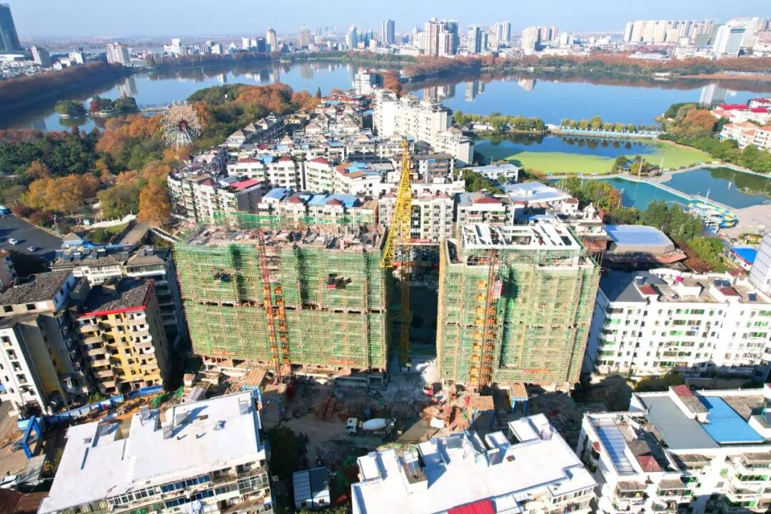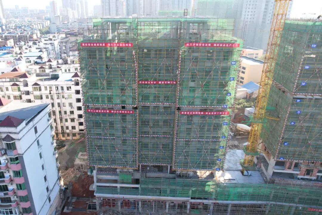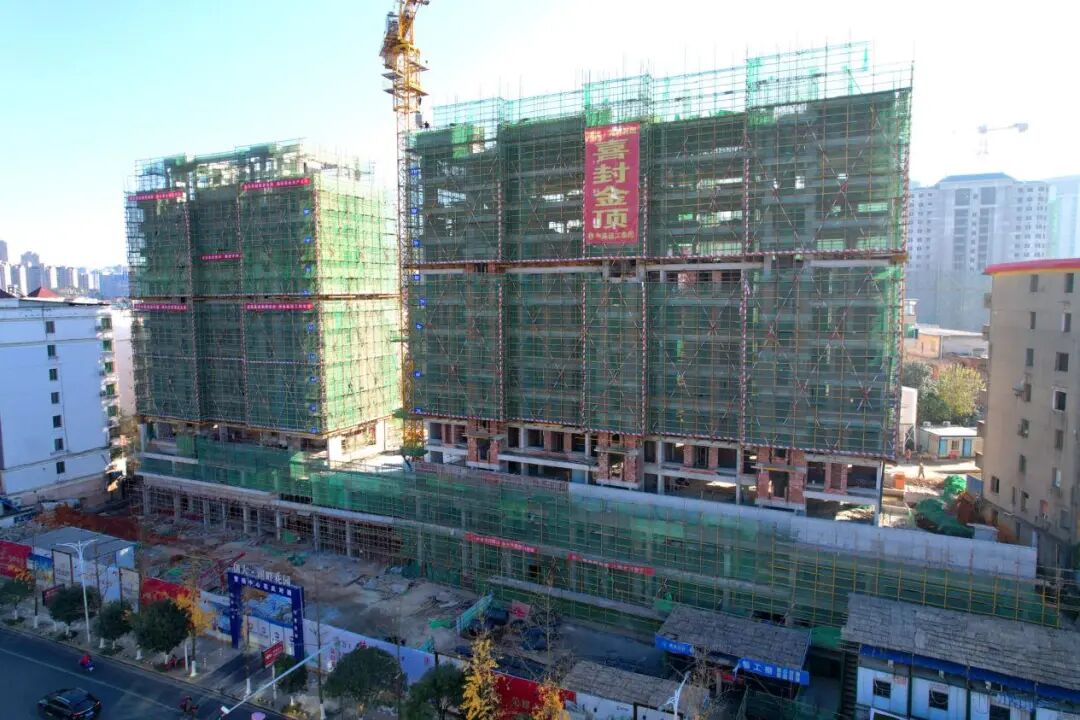 其中A栋楼已经整体完工,楼顶已完成浇筑。