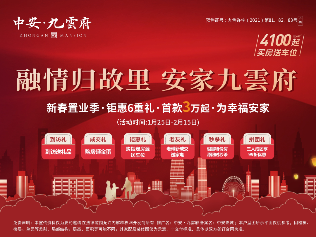 免责声明:1. 开发公司为“九江新晟房地产开发有限公司”2. 本宣传资料为要约邀请,不作为要约或承诺;3. 本宣传资料对项目与周边环境、交通、公共设施的地理关系示意,并非地图,旨在协助提供相关信息,不意味着公司对此作出任何承诺;4.文章图片来源于“现场实拍图”、“项目效果图”、“网络图片”;因编辑需要文字和图片之间亦无必然联系,仅供读者参考;5.本文内容最终解释权归九江新晟房地产开发有限公司所有。