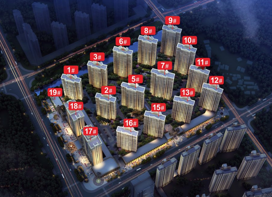 项目总占地面积86847.01㎡(约130.27亩),总建筑面积33万㎡,由14栋高层住宅、1栋商业酒店和1栋服务型公寓组成。