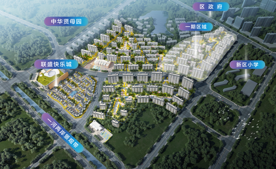 项目总建面约55万㎡,产品涵盖叠墅、洋房及高层,容积率低至1.3。自带商业综合体联盛快乐城(待建),时尚商业街区、自建幼儿园等生活配套。