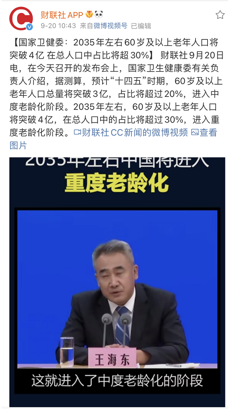 据第七次全国人口普查数据显示,我国60岁及以上人口为2.6402亿人,占总人口比重18.70%,与2010年相比上升5.44%。民政部预测,“十四五”期间,我国老年人口将突破3亿,从轻度迈入中度老龄化社会。