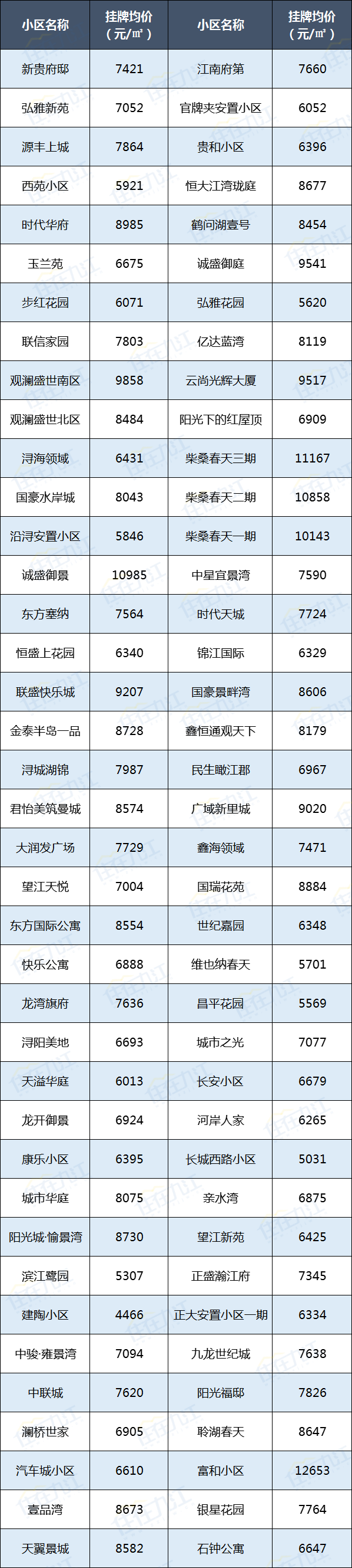 挂牌均价:均价为小区业主挂牌价格的平均值;挂牌价格一般高于成交价格;高层、别墅、公寓等混合小区挂牌价参考性失真。