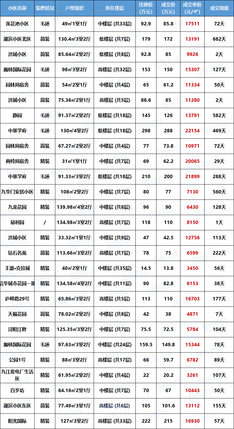 1月二手房成交数据出炉,2023年1月九江5区共成交103套二手房,环比上月下降24%。分区来看,浔阳区以成交27套居榜首,其次濂溪区以26套位列第二。