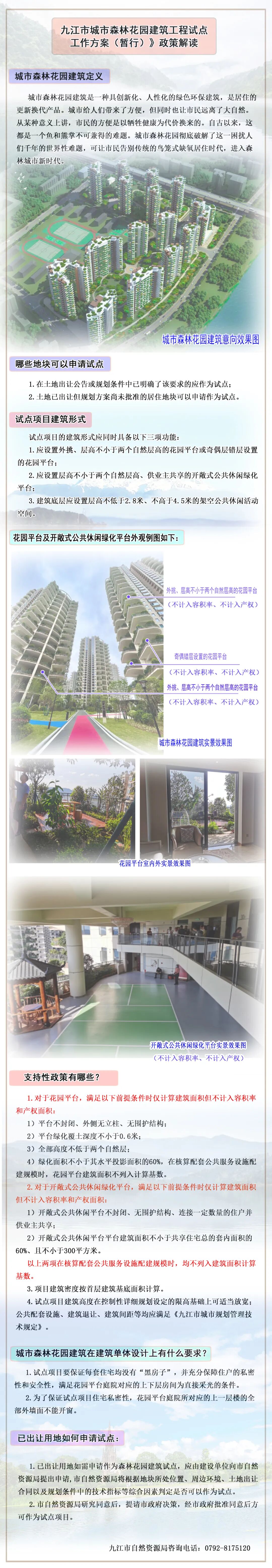 为切实提升九江市人居环境品质,加快生态园林城市建设,推动城市森林花园建筑试点工作有序开展,特制定《九江市城市森林花园建筑工程试点工作方案(暂行)》。