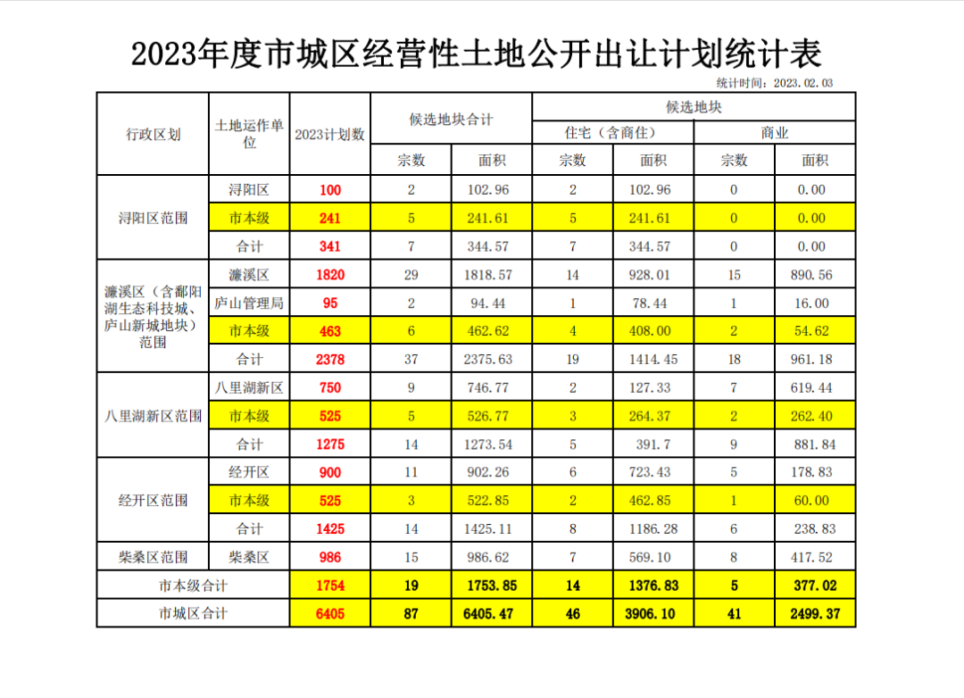 市城区商住地块共46块!2023年度市城区经营性土地公开出让计划统计表公布