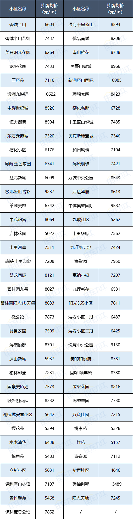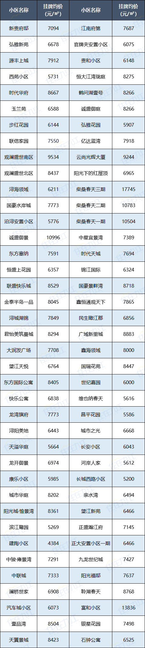 挂牌均价:均价为小区业主挂牌价格的平均值;挂牌价格一般高于成交价格;高层、别墅、公寓等混合小区挂牌价参考性失真。