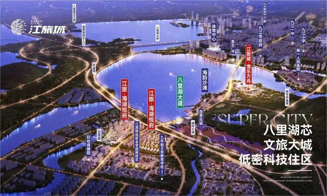 江旅城·海湖悦府约50万方超集综合城,基于城市发展趋势的前瞻性考量,雄踞八里湖板块核芯地段,落子八里湖大道、长虹西大道等城市中芯枢纽处,打造九江生态人居版图里的美好峯面。