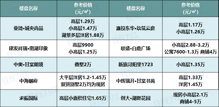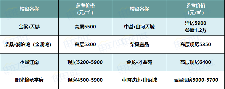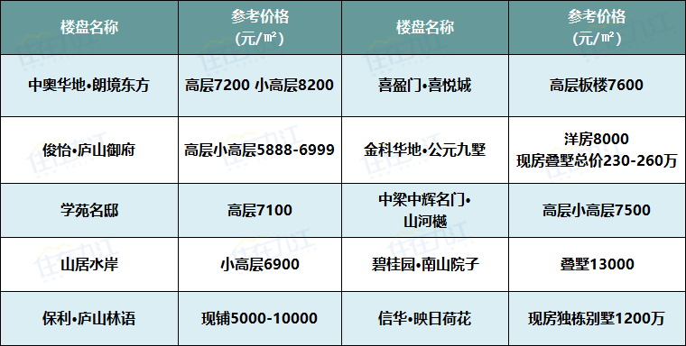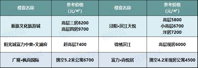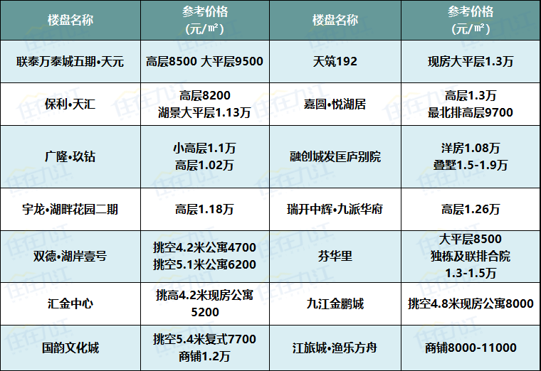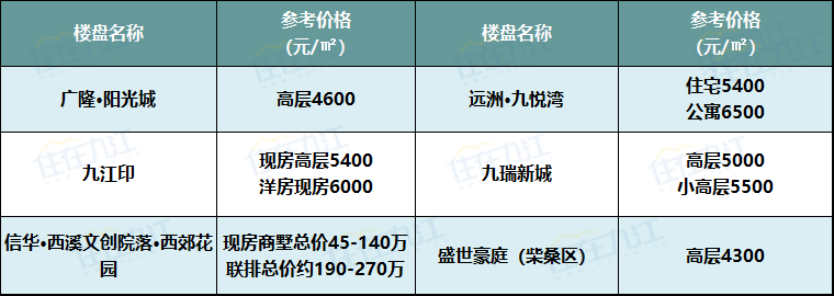 注:以上板块划分标准以九江规划局2017年公布的片区规划方案为准、以上项目价格为网络报价及调研数据,具体以售楼部为准。