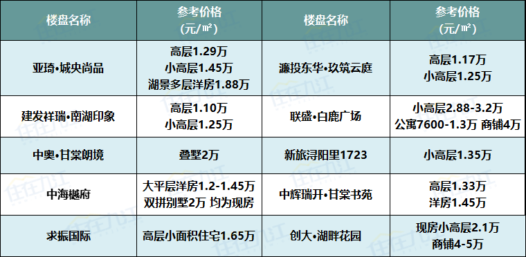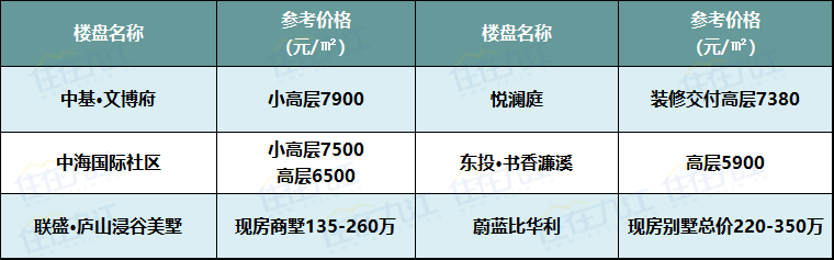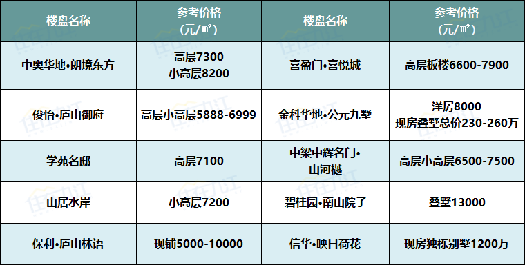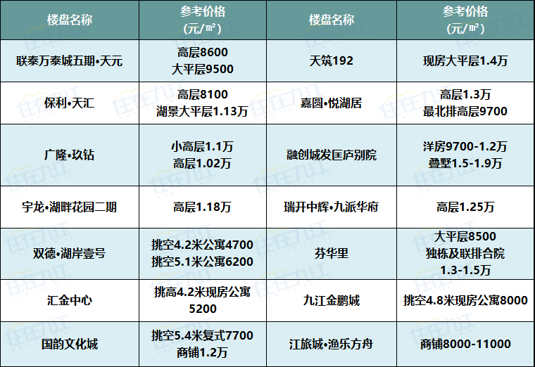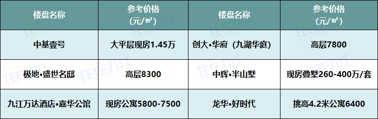 注:以上板块划分标准以九江规划局2017年公布的片区规划方案为准、以上项目价格为网络报价及调研数据,具体以售楼部为准。
