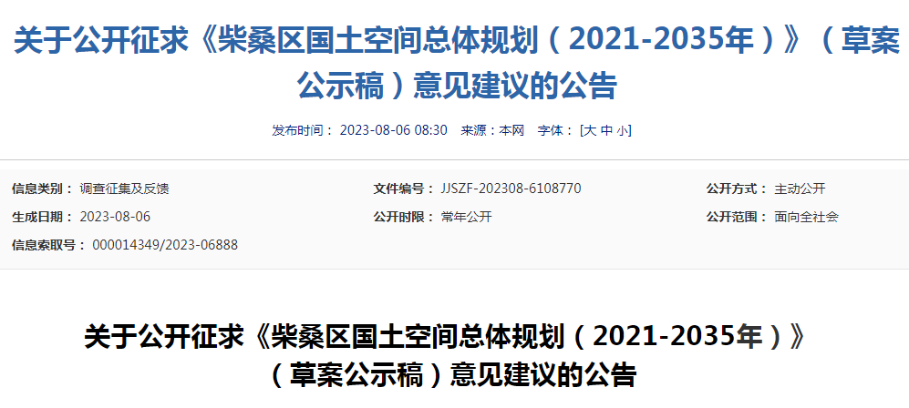 近日,柴桑区自然资源局发布了《柴桑区国土空间总体规划(2021-2035年)》(公示稿)意见建议的公告。
