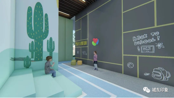 在城东印象的架空层空间,未来业主们可以以孩子们的视角为切入点,以童心造童梦,用童真和创意的元素呈现,打造架空层下美好无限的梦幻乐园,向孩子们表达最温情的关怀。
