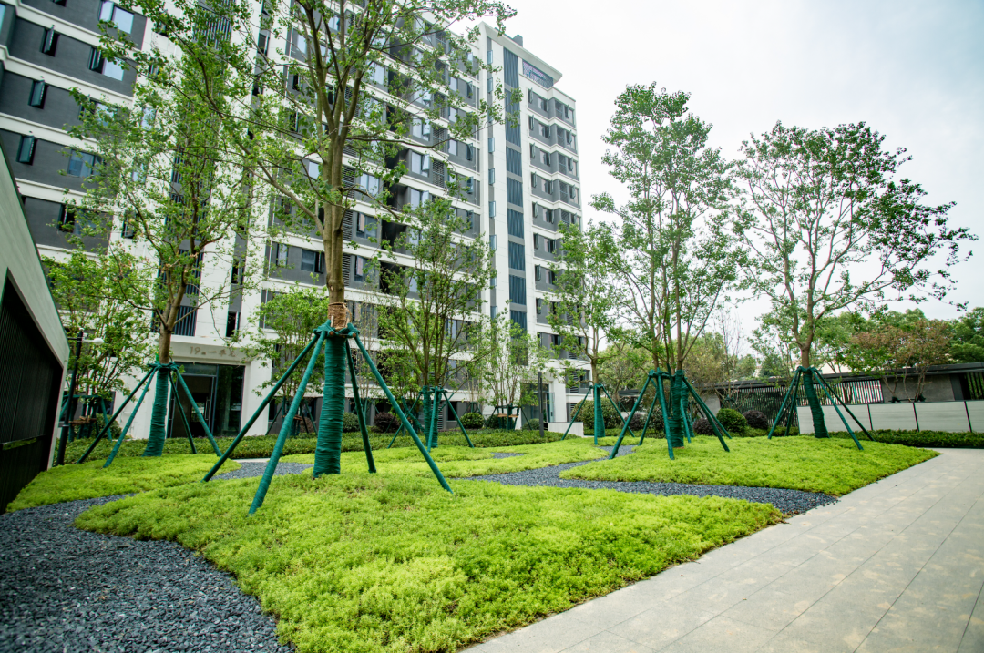 一路走来,近听潺潺水声,沿路软景小品采用多种设计手法,园林蜿蜒,出入惬意。极具辨识度的高颜值建筑立面映照着天空,衬得楼体熠熠生辉;简约大气的玻璃窗折射出阳光的光影变幻,宽阔的楼间距让置身其中的人们只觉心旷神怡,整个小区宁静优雅,高级感满满又舒服耐看!对于业主而言,饭后散步、带娃玩耍、运动健身、邻里攀谈……一幅幅美好日常由此徐徐展开。