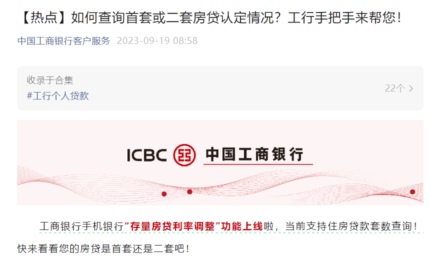 工商银行手机银行“存量房贷利率调整”查询功能上线: