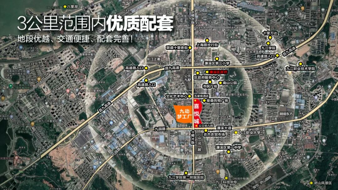 喜盈门·喜悦城所处的位置,正处于濂溪政经一脉之上,旁边就是濂溪区政府。