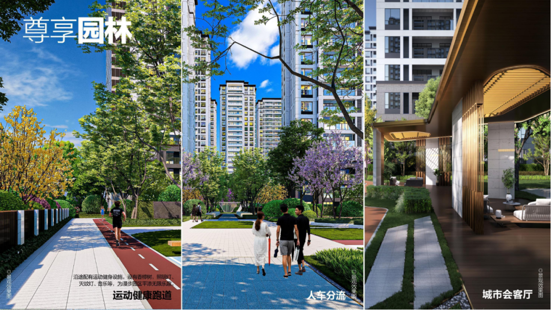 同时打造有健康跑道、阳光大草坪、中央会客厅、儿童乐园等主题场景,在小区即可满足老-中-青-幼全龄人群所有需求。