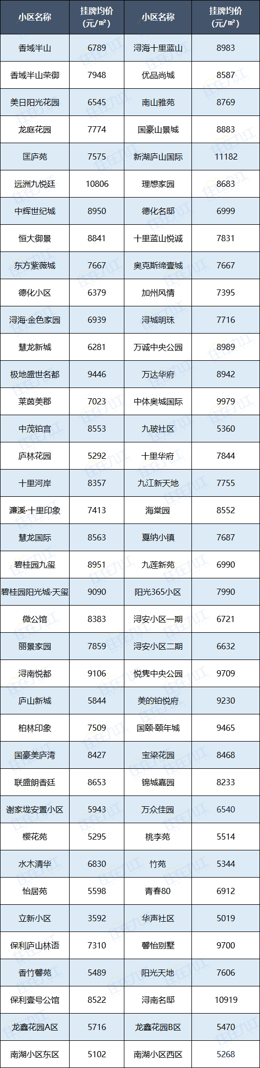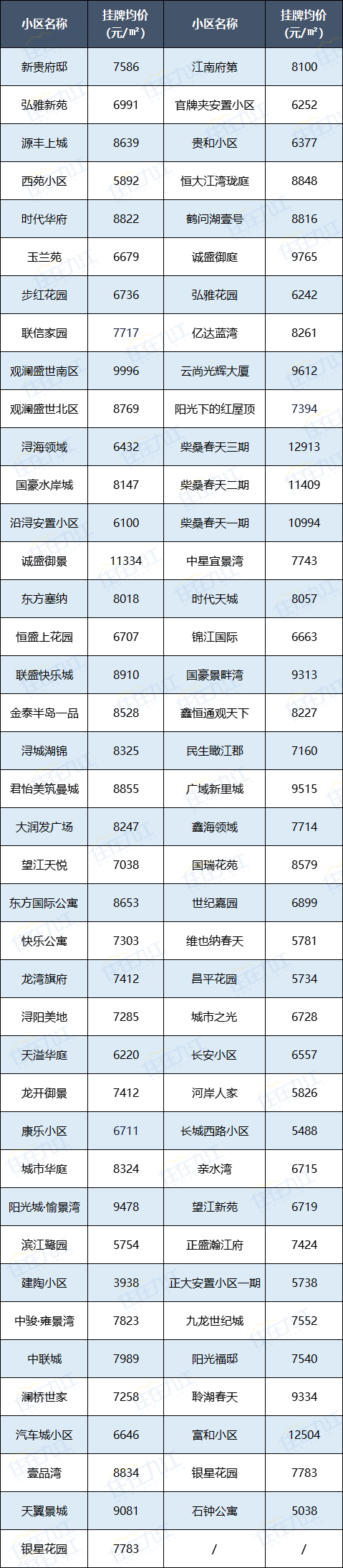 挂牌均价:均价为小区业主挂牌价格的平均值;挂牌价格一般高于成交价格;高层、别墅、公寓等混合小区挂牌价参考性失真。