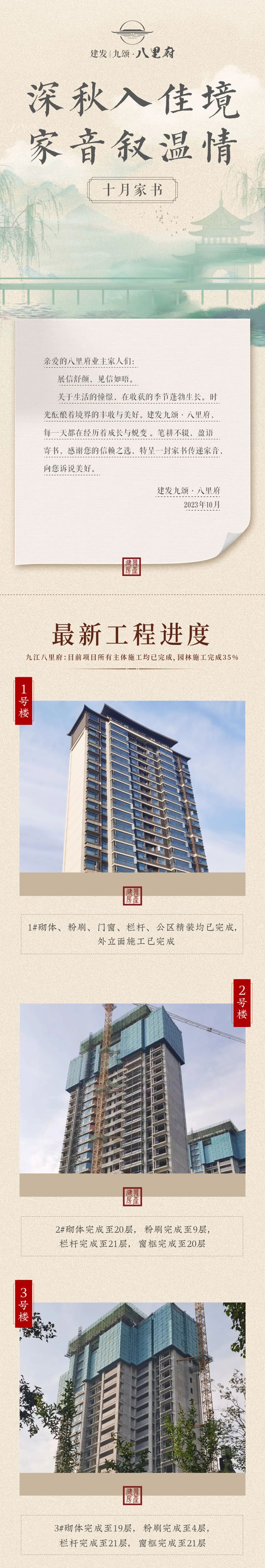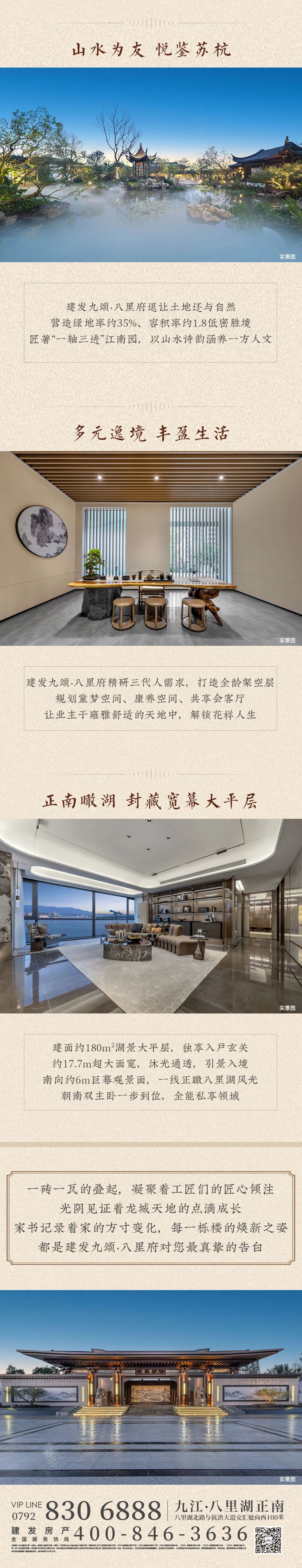 建发九颂·八里府为本案推广名,建发九颂·八里轩为本案备案名,开发商为九江兆益房地产有限公司。预售证号:(2021)房预售证第269号、(2021)房预售证第270号、(2021)房预售证第271号、(2022)房预售证第96号、(2023)房预售证第 14号。部分图片、文字等内容版权归原作者所有,本文只作为引用,如原作者表明身份要求本公司停止使用该素材,请及时与本公司联系删除。项目相关配套设施、场所运营及各功能区规划以交付使用状态为准,此资料仅供展示及参考。本资料户型图仅为户型结构示意,所涉及的建筑面积、装修平面效果、图示使用方式、图片文字数据或其他资料仅供参考,不作为交房标准及邀约承诺。相同户型单元,在不同楼栋、不同楼居、不同位置,面积、阳台结构、局部结构及外立面可能存在差异,实际交付以政府最后批准之法律文件及买卖双方签订的《商品房买卖合同》为准。因设计、施工、技术、政府政策、政府规划、政府规定的调整需要以及开发商未能控制的原因,项目存在调整产品种类、形式的可能,本公司保留对户型修改或优化的权利,敬请留意最新资料。置业计划内所列示各项信息仅供参考,不作为开发商价格及收费承诺,实际价格、税费等标准以合同签订及有关政府管理部门最新规定执行。贷款等相关信息仅作示意之用,具体标准以金融机构最终授信要求及审批结果为准。受制作批次、市场变化等限制条件或开发商不可控制的原因,开发商在保证以上建设质量的情况下可能进行更换品牌,如有变动,恕不另行通知。本宣传不对学区及入学条件做任何承诺,学校划分及入学条件以政府相关部门最终批准方案为准。本条微信内容为售楼宣传资料,相关内容不排除因政府相关规划、规定及开发商未能控制的原因而发生变化,文中所用图片、文字、视频、数据、位置示意、周边环境、交通、教育、商业及其他配套设施的介绍等仅作为参考之用,并非最终方案,不作为邀约或承诺。九江兆益房地产有限公司享有本活动最终解释权。建发房产全国服务热线 400-846-3636。本资料所发布的内容为2023年10月31日前的信息,敬请留意最新资料。