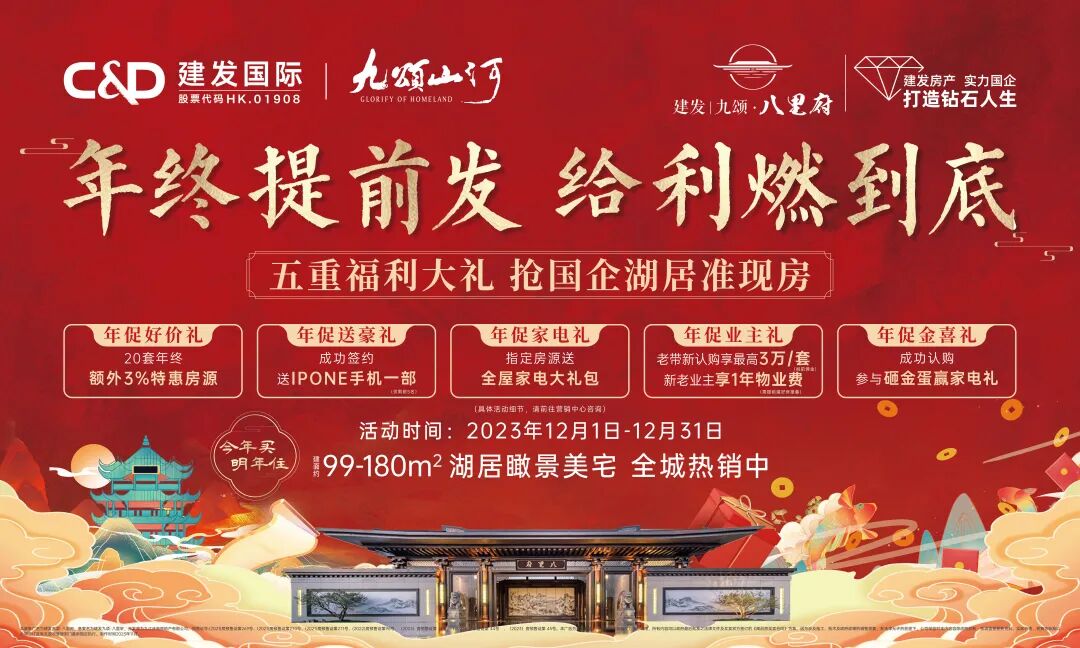 值此岁末年终盛惠之际,建发九颂·八里府正以持续高燃的劲销盛况,回应市场热望;同时,也以愈发清晰的美好家境,加速兑现家人期许。愿在不远的将来,我们在八里府中诗意相逢,且歌且醉且欢愉。