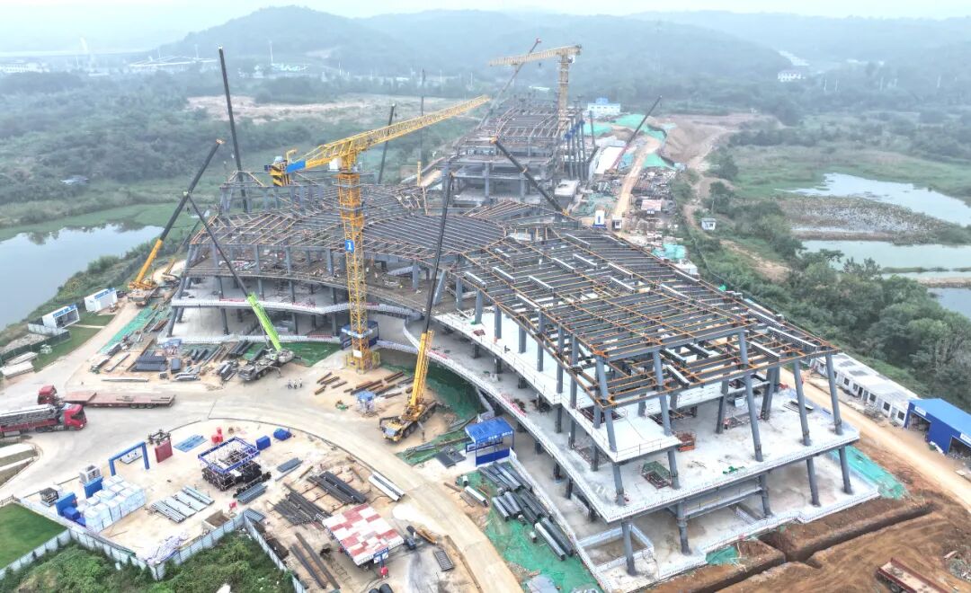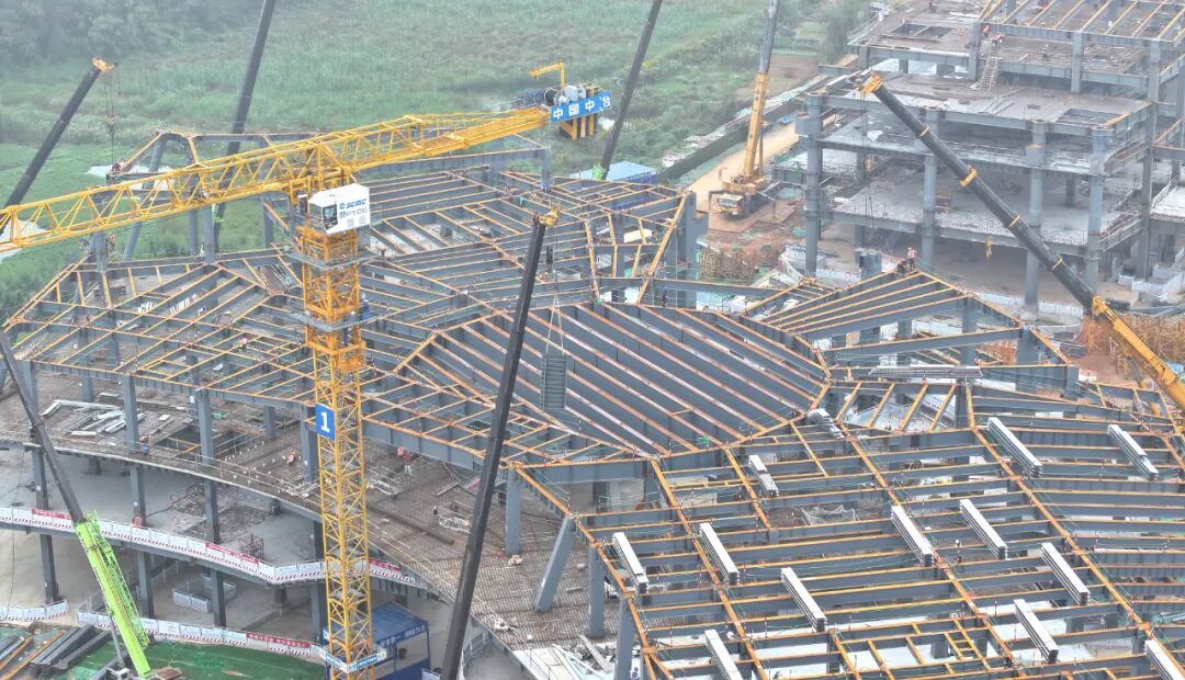近日,九江市科技文化产业园一期项目(三馆合一)正在加紧建设,主体框架已基本成形,预计10月底完成地上主体结构封顶。