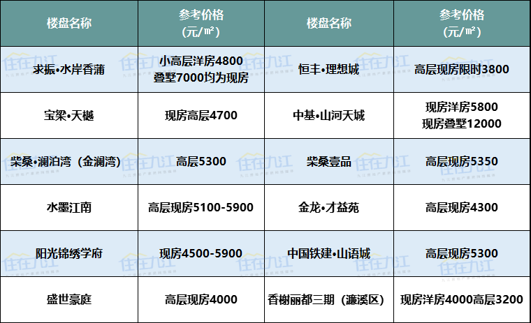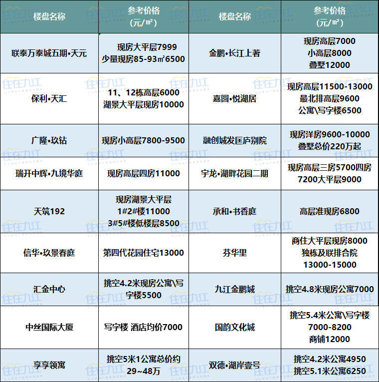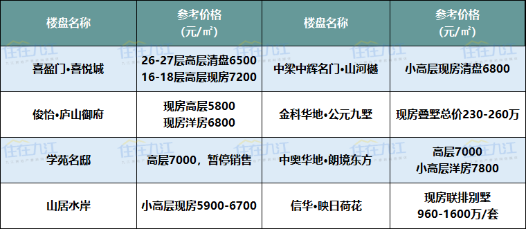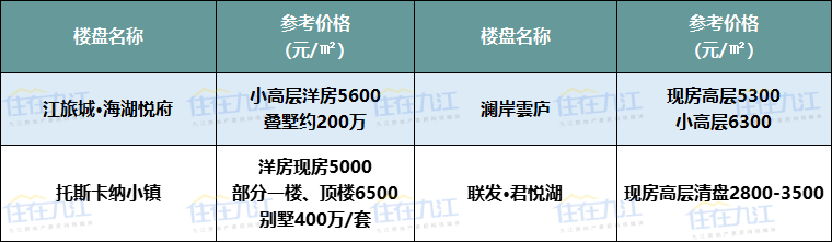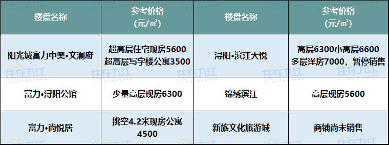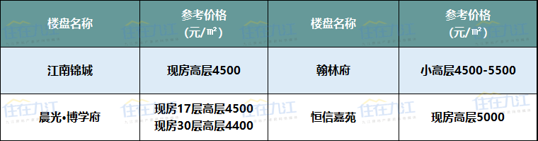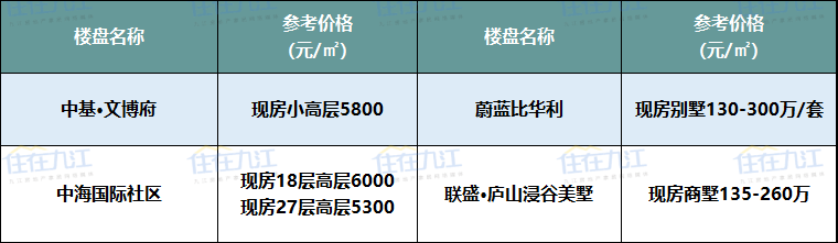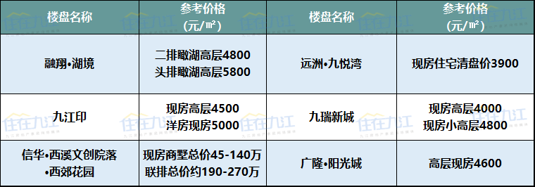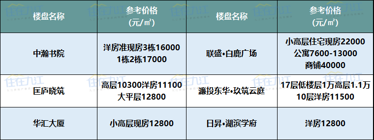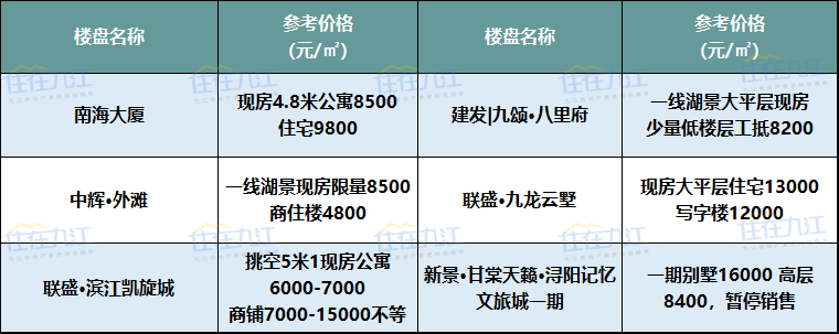 注:以上板块划分标准以九江规划局2017年公布的片区规划方案为准、以上项目价格为网络报价及调研数据,具体以售楼部为准。