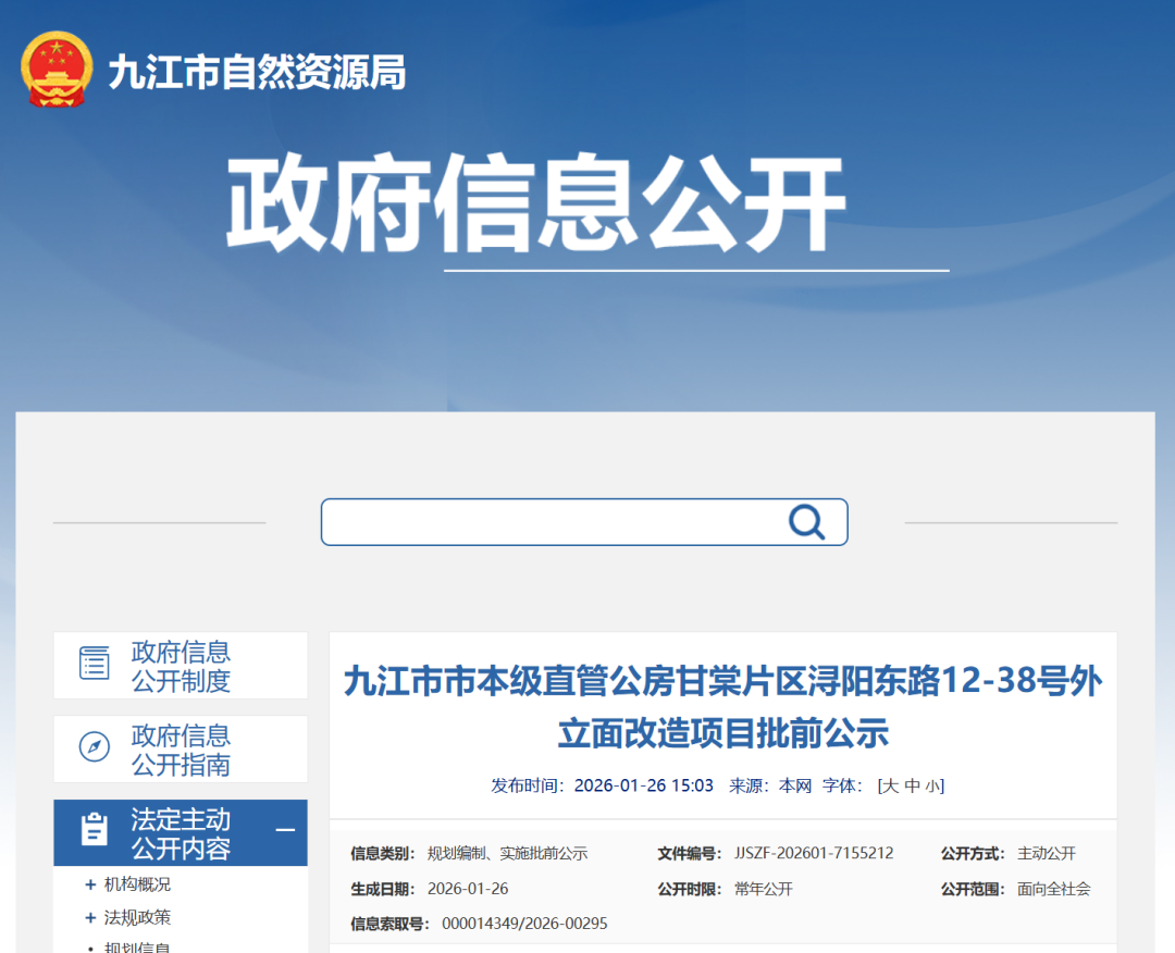 公示内容:本项目改造楼栋位于甘棠片区,主要立面沿城市主干道浔阳东路。现拟对浔阳东路12-38号进行立面提升,仅对建筑外墙出新,与改造前颜色基本一致。