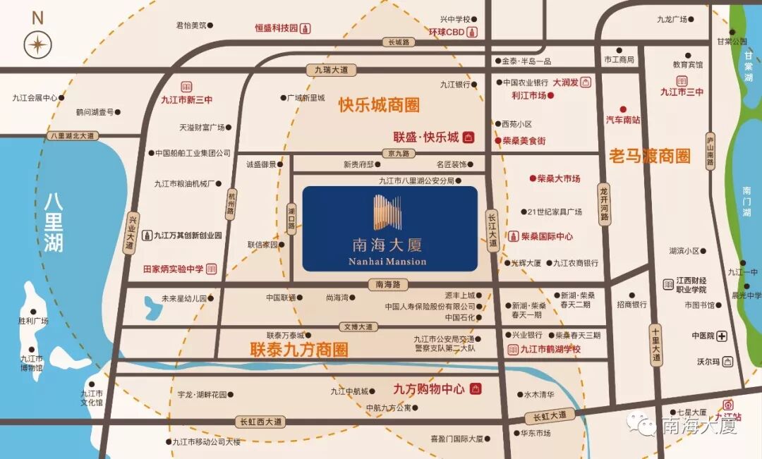 项目位于九江市长江大道与南海路交汇处,多条线路途经于此,汇集交通、商业、教育及医疗,坐拥繁华配套。步行即可到达联盛快乐城,开车十多分钟就能到大润发、九方购物中心、联盛九龙广场等商圈嗨皮。