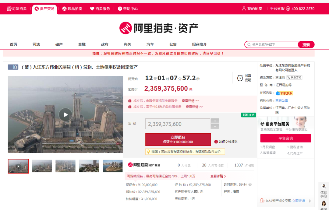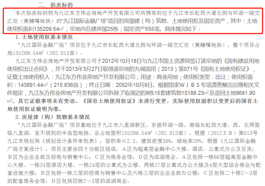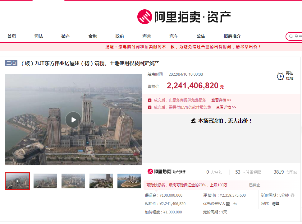 在小编看来,阻碍国际金融广场拍卖的原因,除了价格因素外,更重要是此次的标的物并非空地,而是“九江国际金融广场”项目的房屋建(构)筑物、土地使用权及固定资产,不仅存在大量的产权问题,还有后续施工等相关压力。