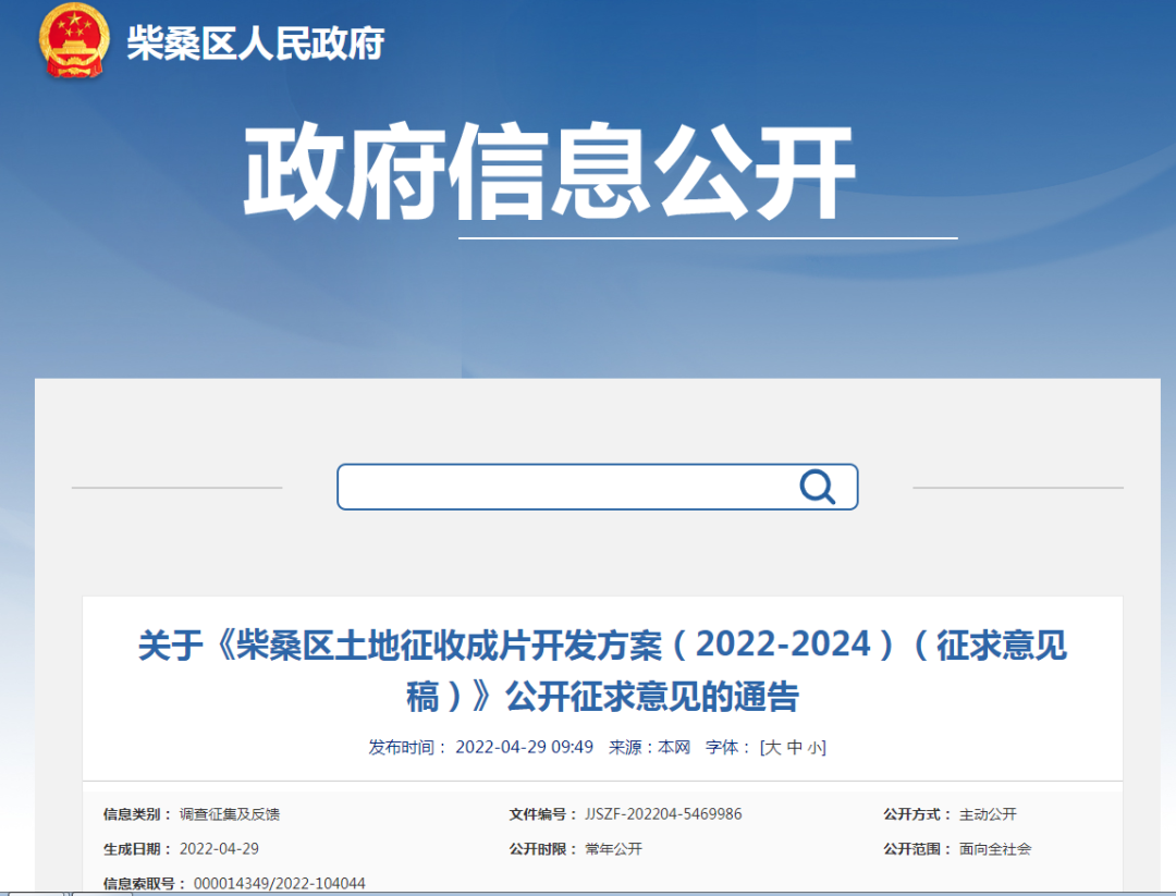 关于《柴桑区土地征收成片开发方案(2022-2024)(征求意见稿)》公开征求意见的通告