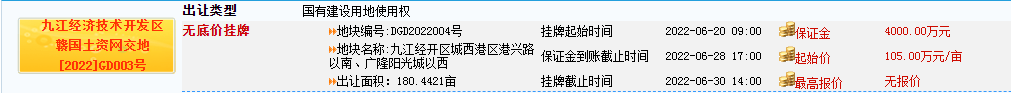 ⑤、其它未尽事宜详见出让文件《九江经济技术开发区2022年第一批次一宗经营性用地国有建设用地使用权公开出让方案》。