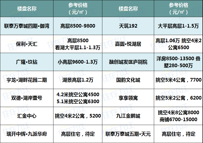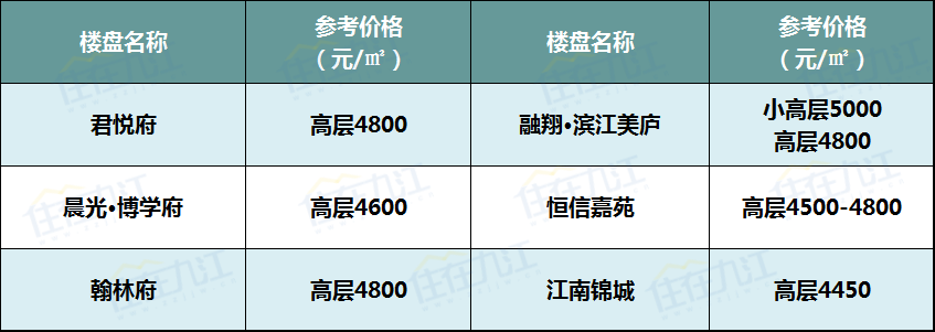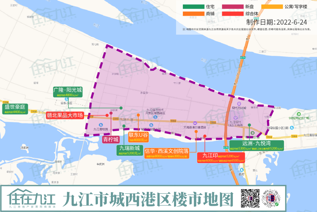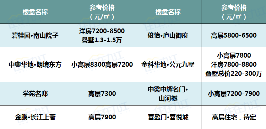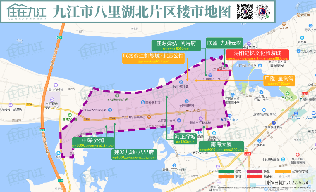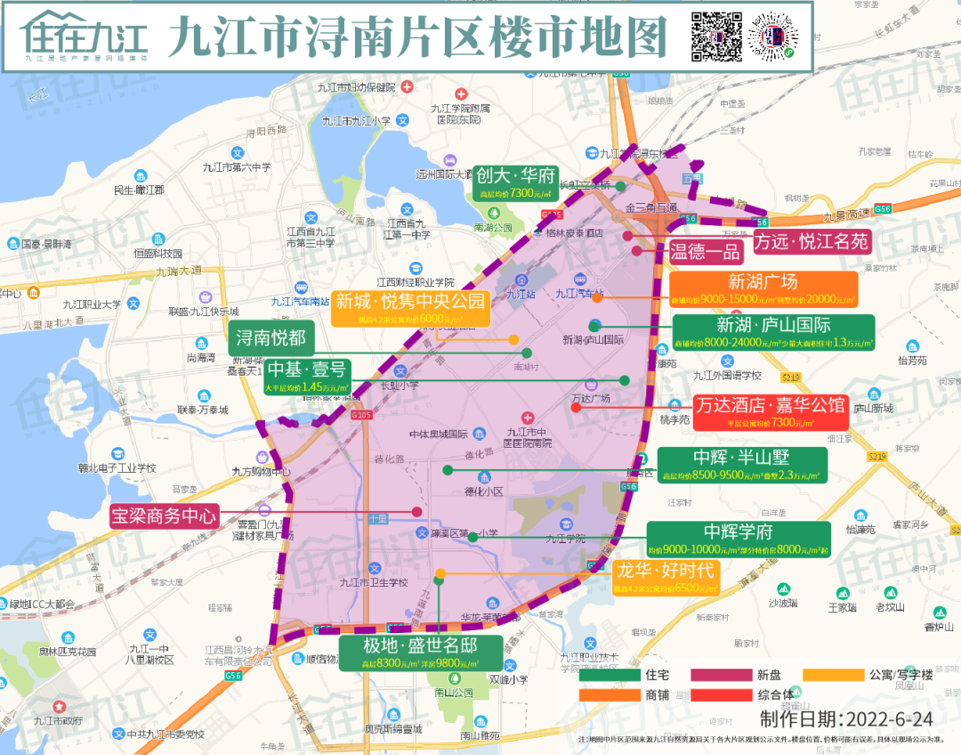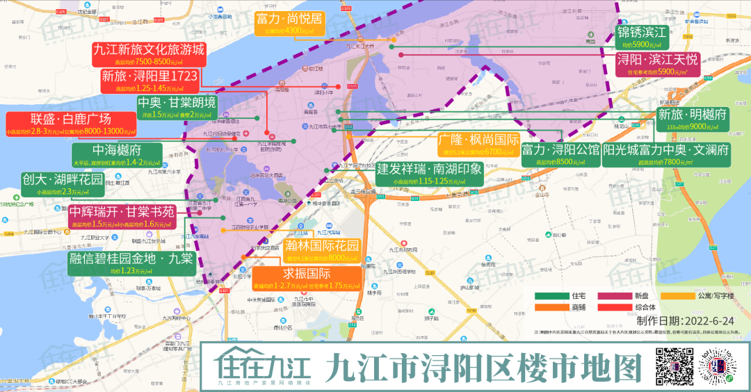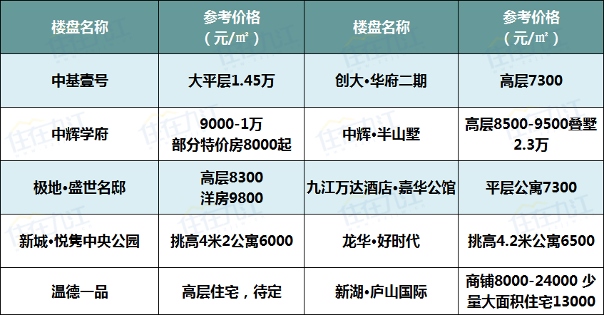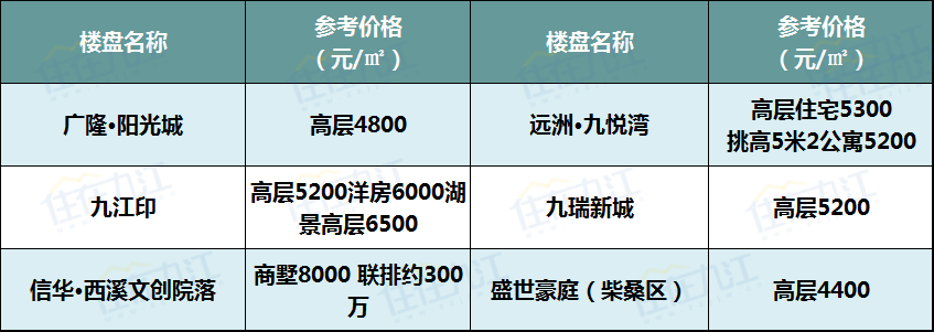 注:以上板块划分标准以九江规划局2017年公布的片区规划方案为准、以上项目价格为网络报价及调研数据,具体以开发商为准。