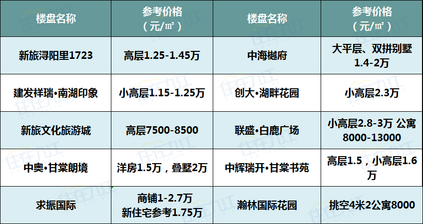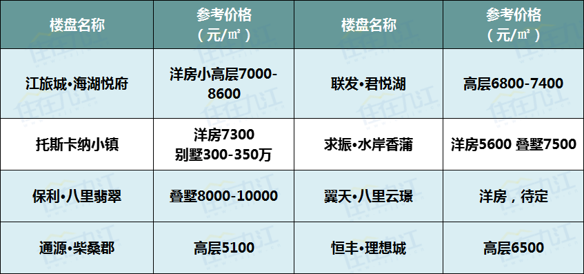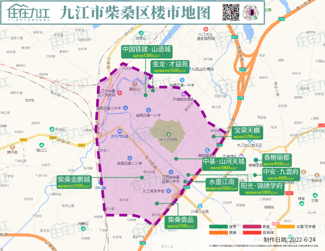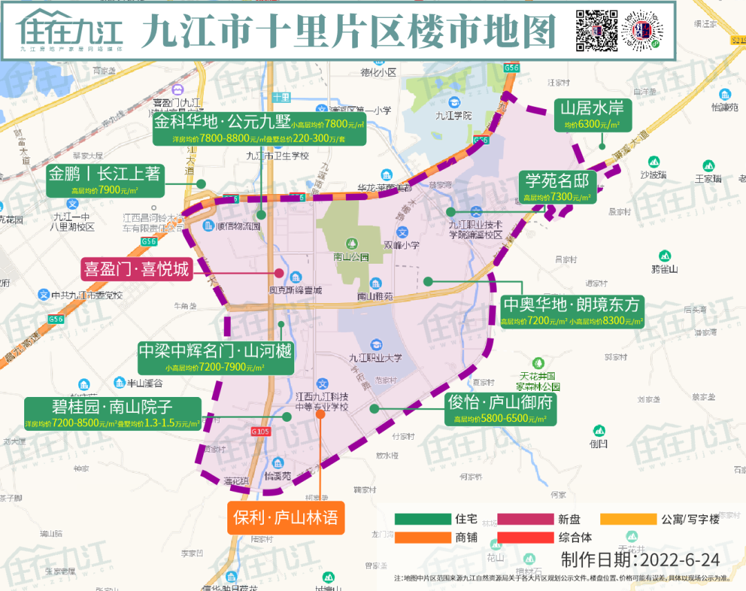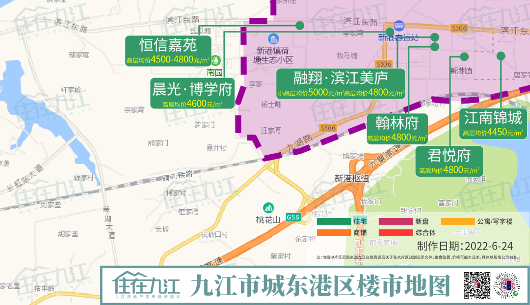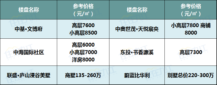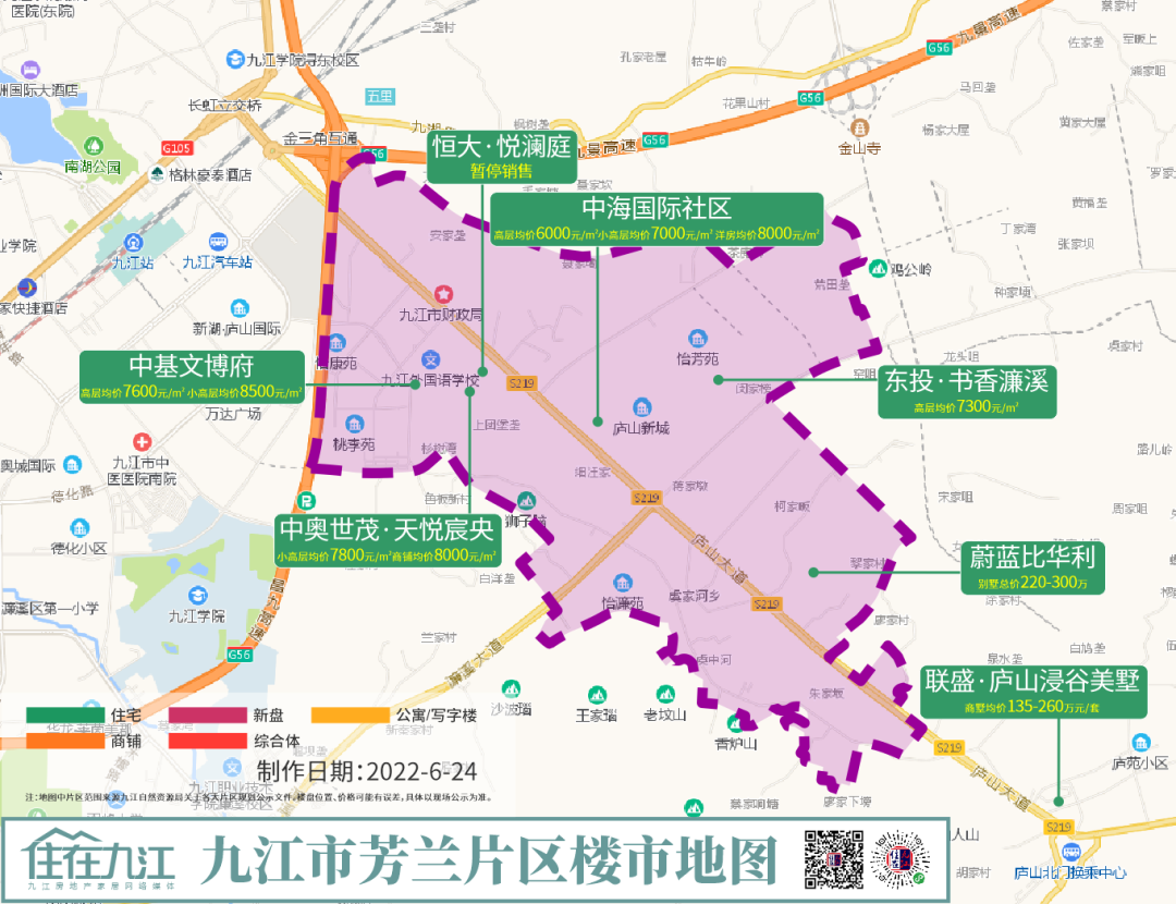 注:以上板块划分标准以九江规划局2017年公布的片区规划方案为准、以上项目价格为网络报价及调研数据,具体以开发商为准。