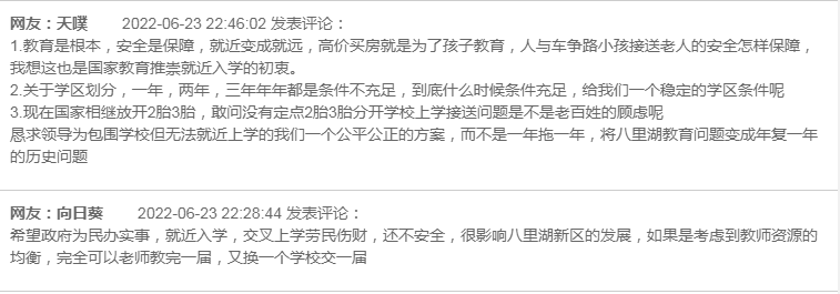 下一步,新区将根据全市关于学区划分政策要求,并结合新区实际,积极研究学区划分工作。目前《八里湖新区2022年中小学生招生工作实施方案》还未出台,届时新区将积极做好招生工作,确保每一位适龄儿童能够入学就读。