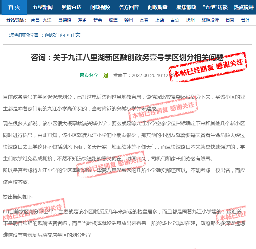 《问政江西》上也有网友对此提出了异议。
