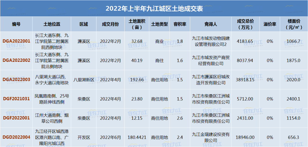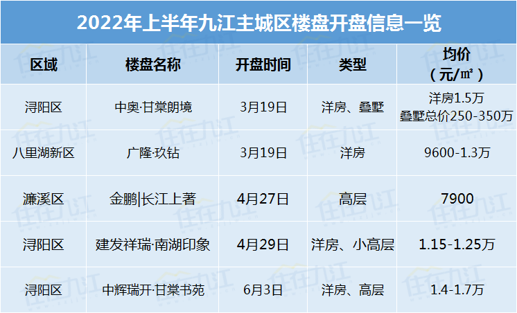 ▲2022年上半年九江主城区楼盘开盘信息情况