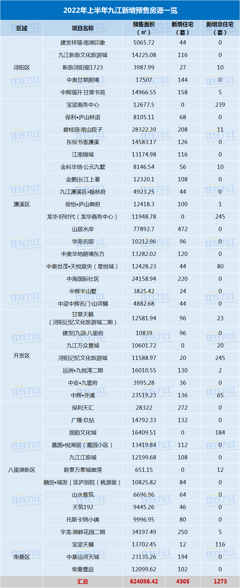 其中,浔阳区5盘获得16张预售证,批准预售面积约55752.34平方米;