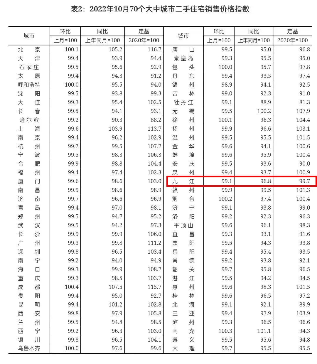 11月16日,国家统计局公布了2022年10月70个大中城市商品住宅销售价格指数。