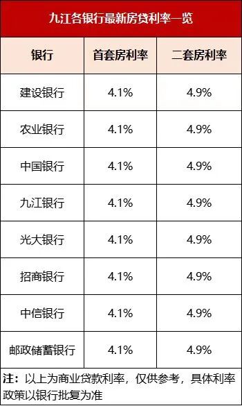 九江商业贷款利率则是再次下降。