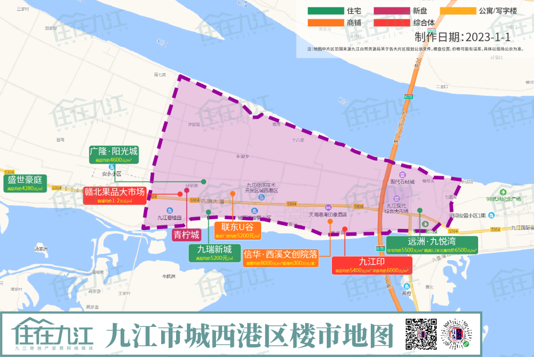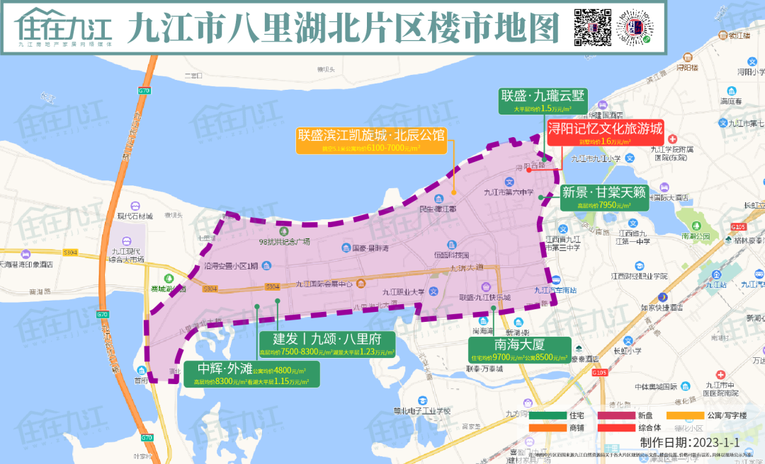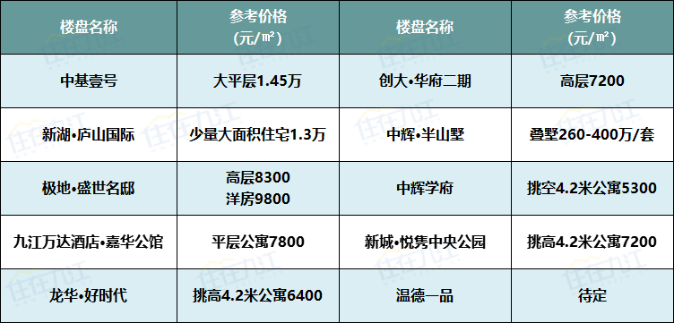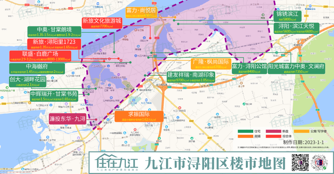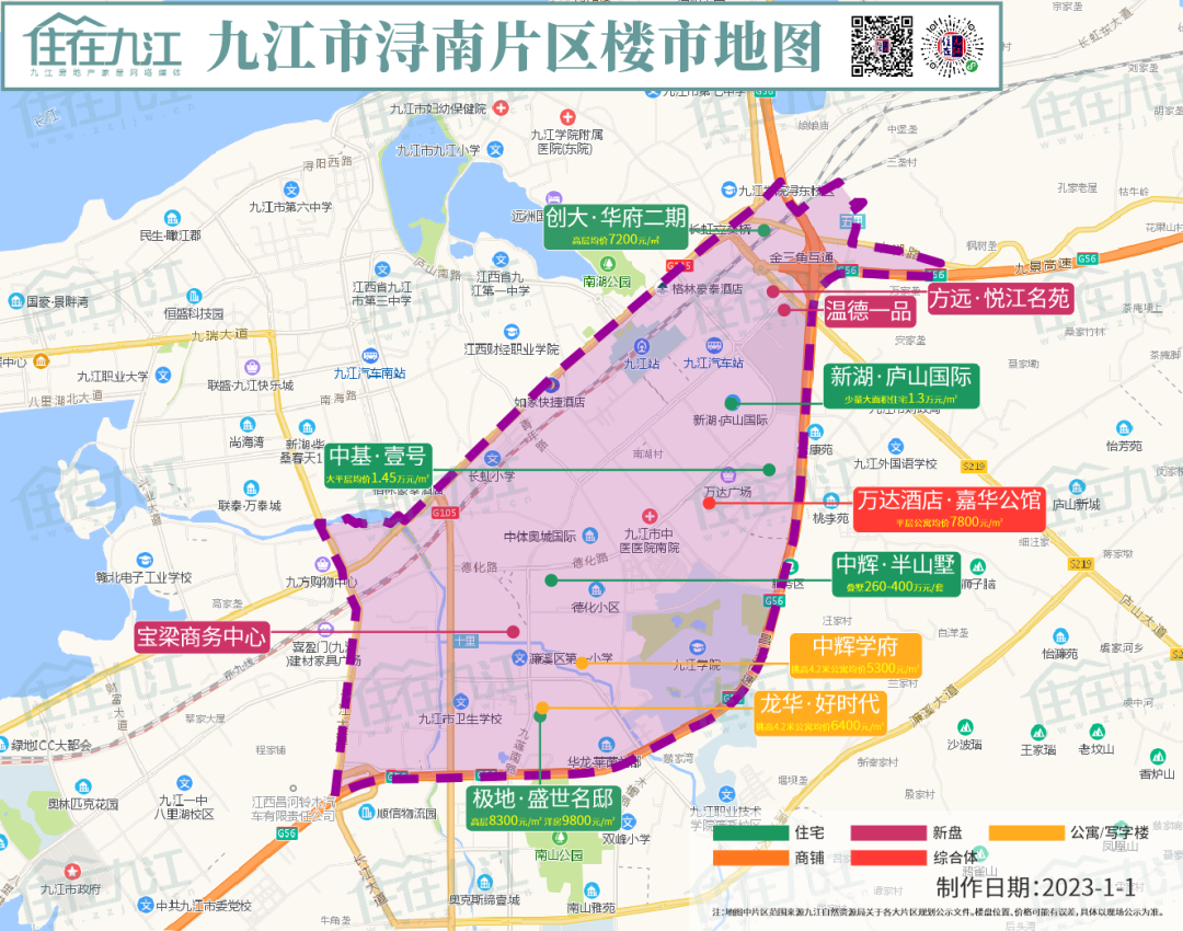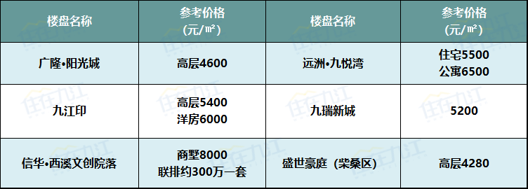 注:以上板块划分标准以九江规划局2017年公布的片区规划方案为准、以上项目价格为网络报价及调研数据,具体以开发商为准。