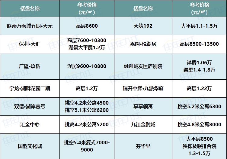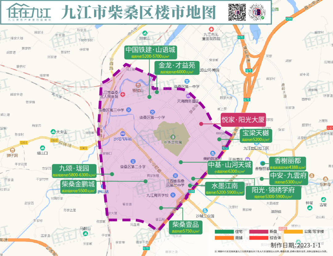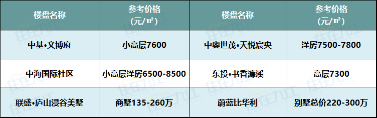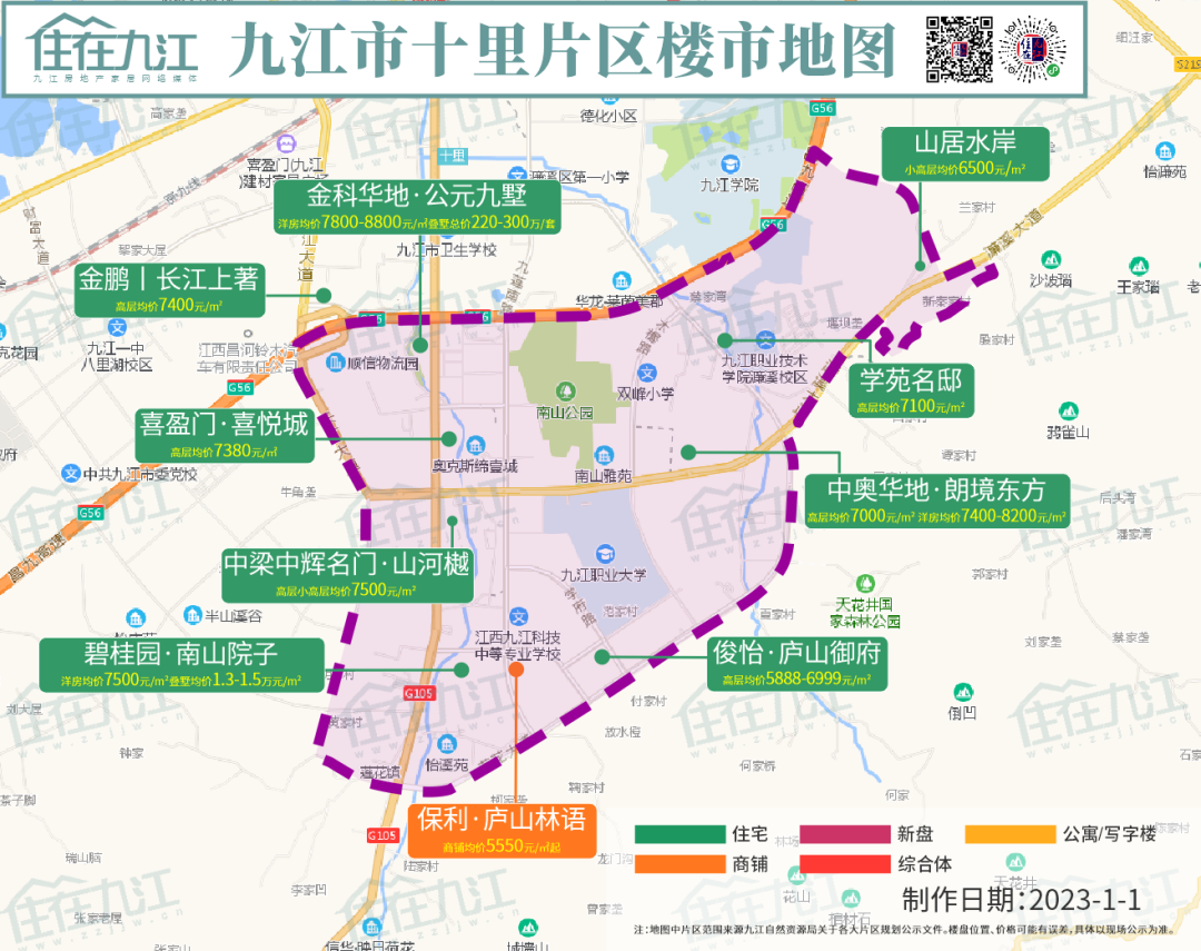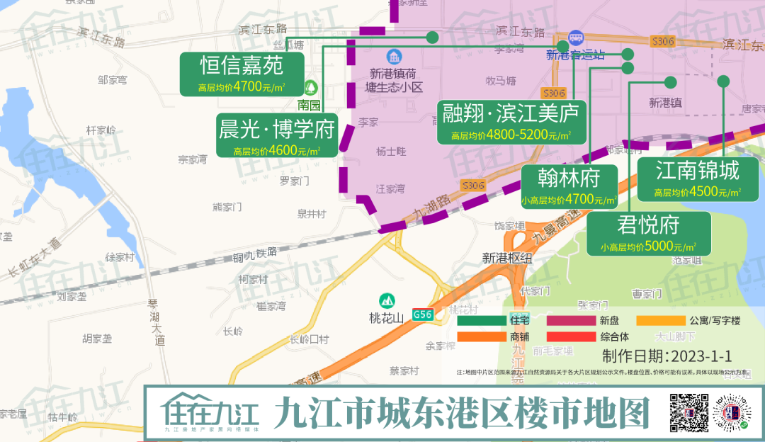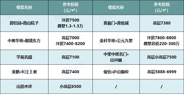 注:以上板块划分标准以九江规划局2017年公布的片区规划方案为准、以上项目价格为网络报价及调研数据,具体以开发商为准。