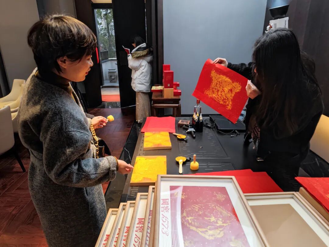 年会现场还有精心准备的年画拓印等活动,,随着时光流逝,这场年会在觥筹交错中迎来落幕。