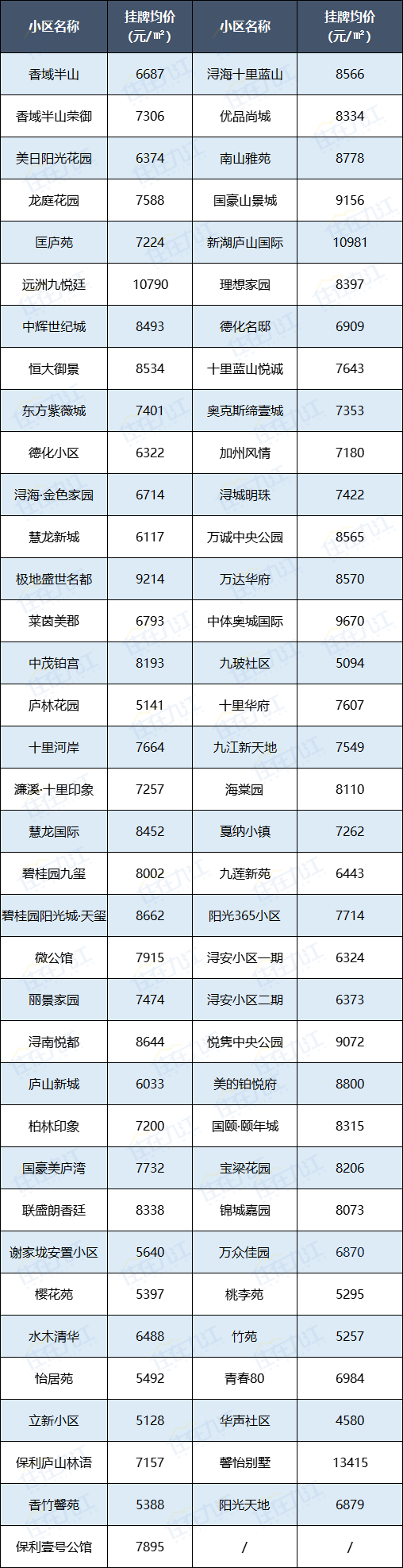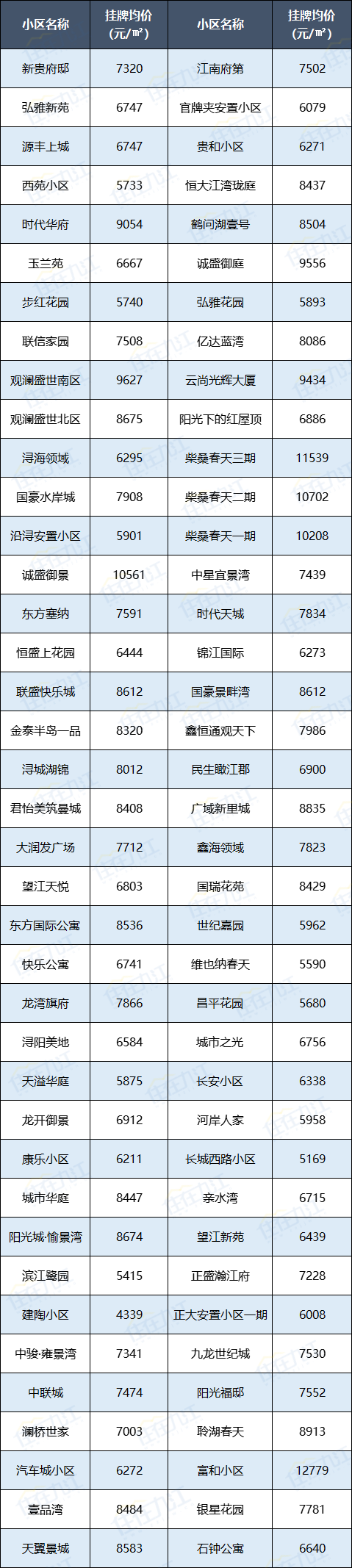 挂牌均价:均价为小区业主挂牌价格的平均值;挂牌价格一般高于成交价格;高层、别墅、公寓等混合小区挂牌价参考性失真。