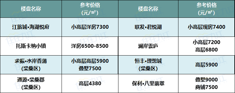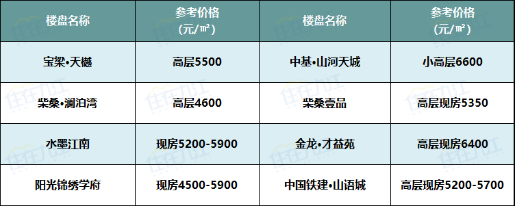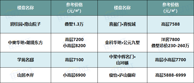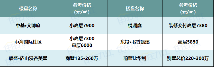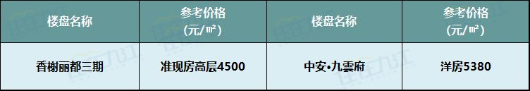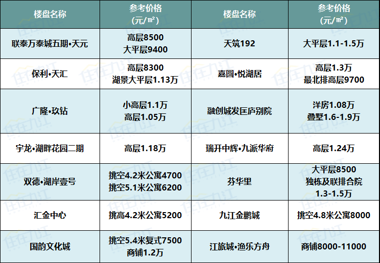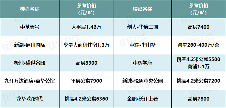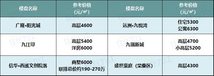 注:以上板块划分标准以九江规划局2017年公布的片区规划方案为准、以上项目价格为网络报价及调研数据,具体以售楼部为准。