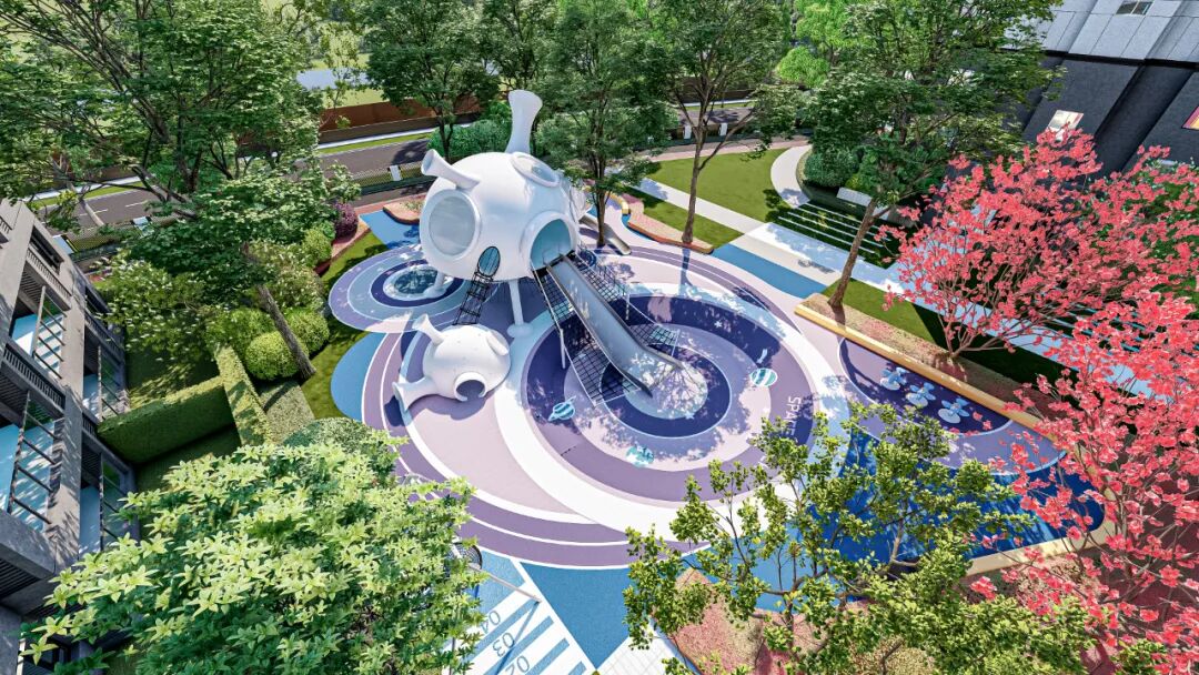 景观方面,小区采用的是喜盈门集团独有的三大中心花园、十大组团绿化打造园林体系,配备社区阳光大草坪公园、全龄段的孩童游玩乐园、老人康健乐园、邻里中心,多功能超千米的跑道。