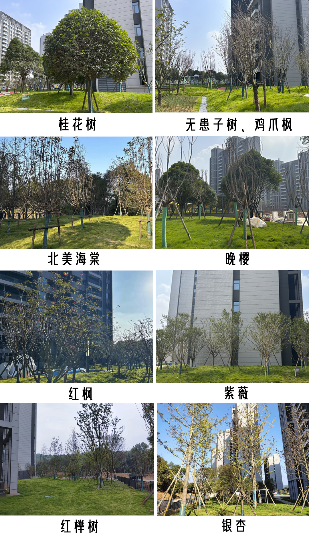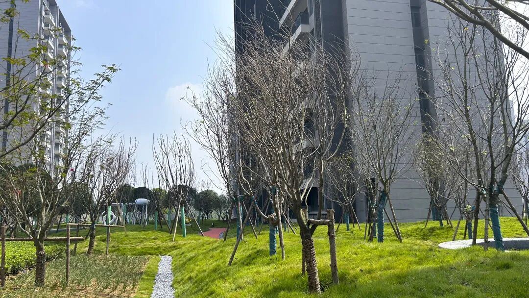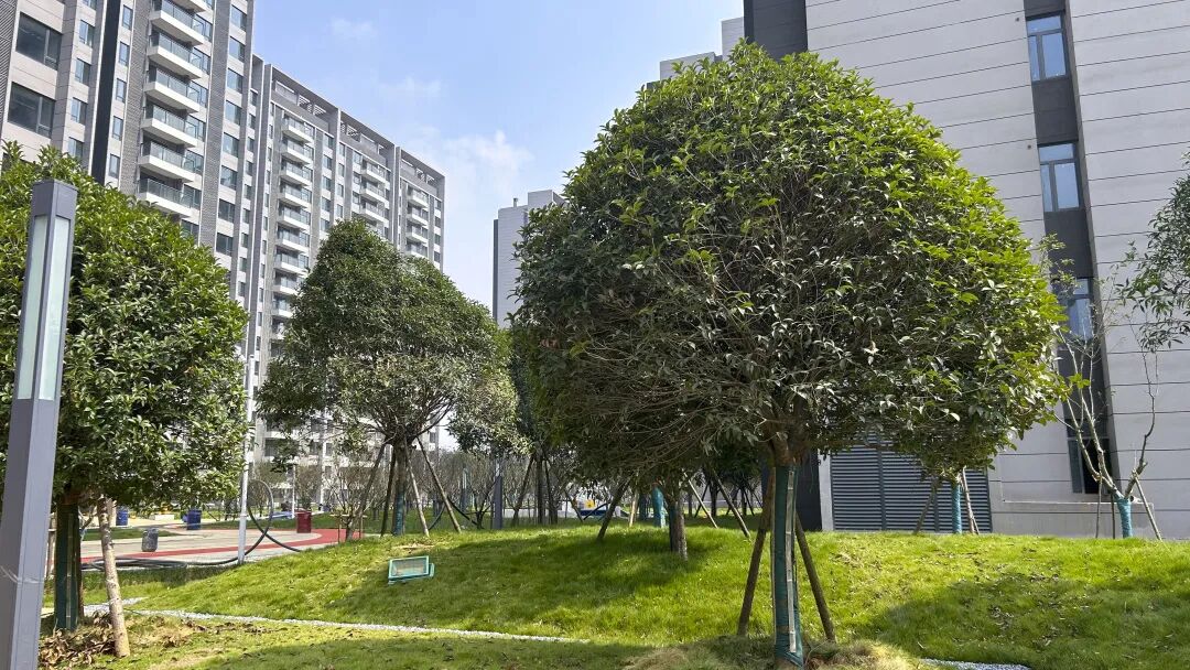 园林融合了“春、夏、秋、冬”四季观赏绿植,晚樱、紫薇、银杏、玉兰、海棠、红枫等名贵树种,匠心造境,移步异景。