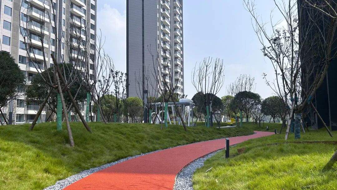 园区还配套了环形健康跑道,漫步在花木掩映的园林中,把四季变幻的风景收纳于胸。