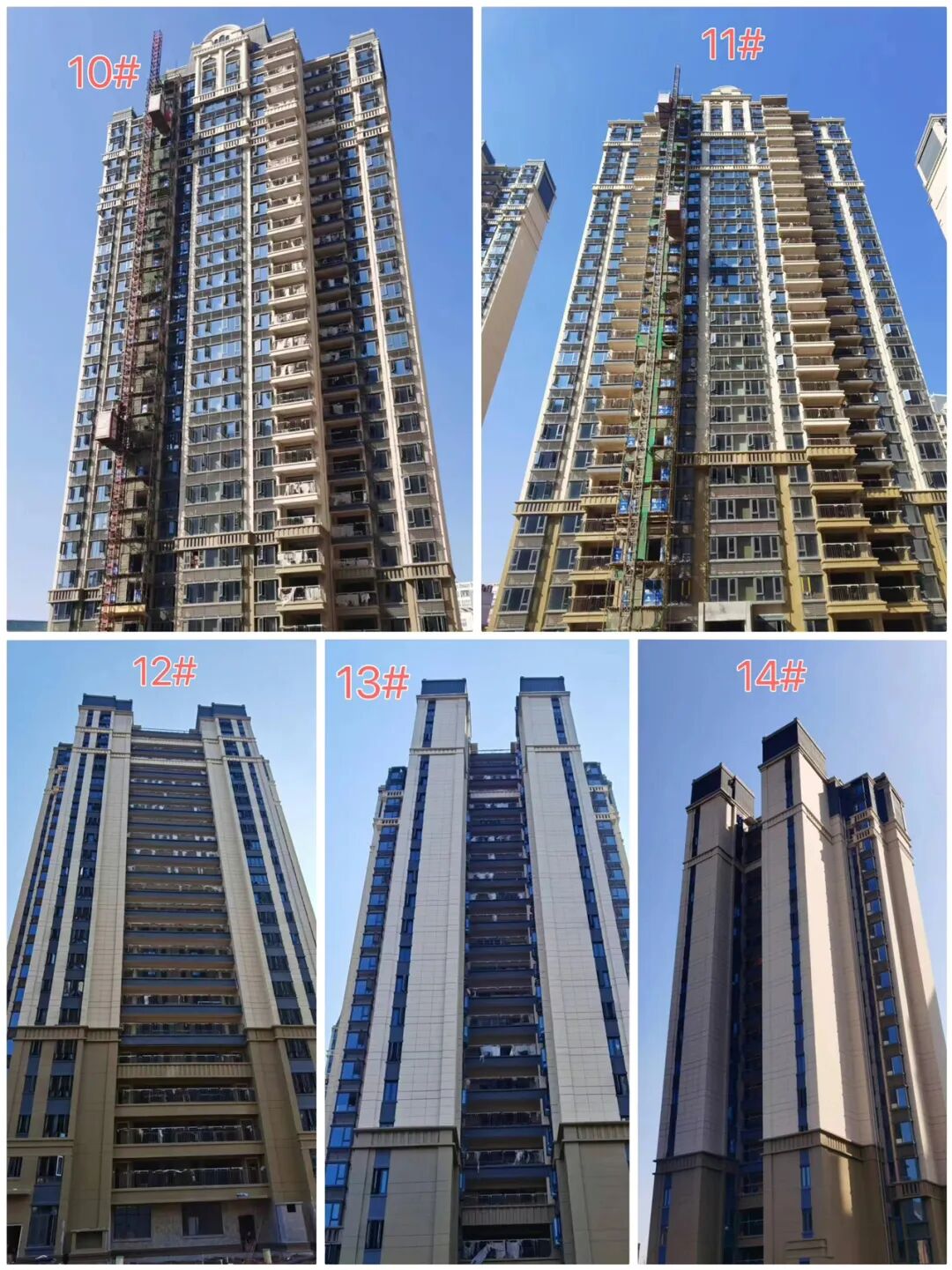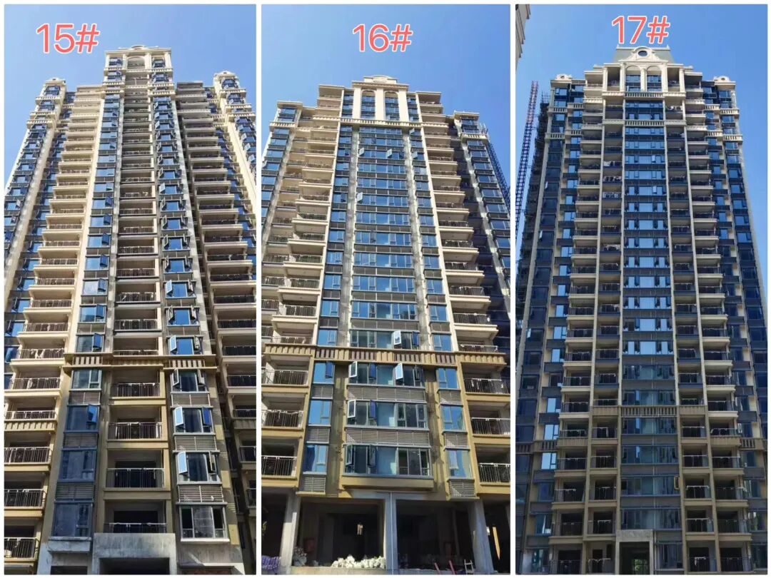 17#楼:铝合金外窗、屋面外墙漆、屋面防水、室内防水完成,外墙漆完成90%