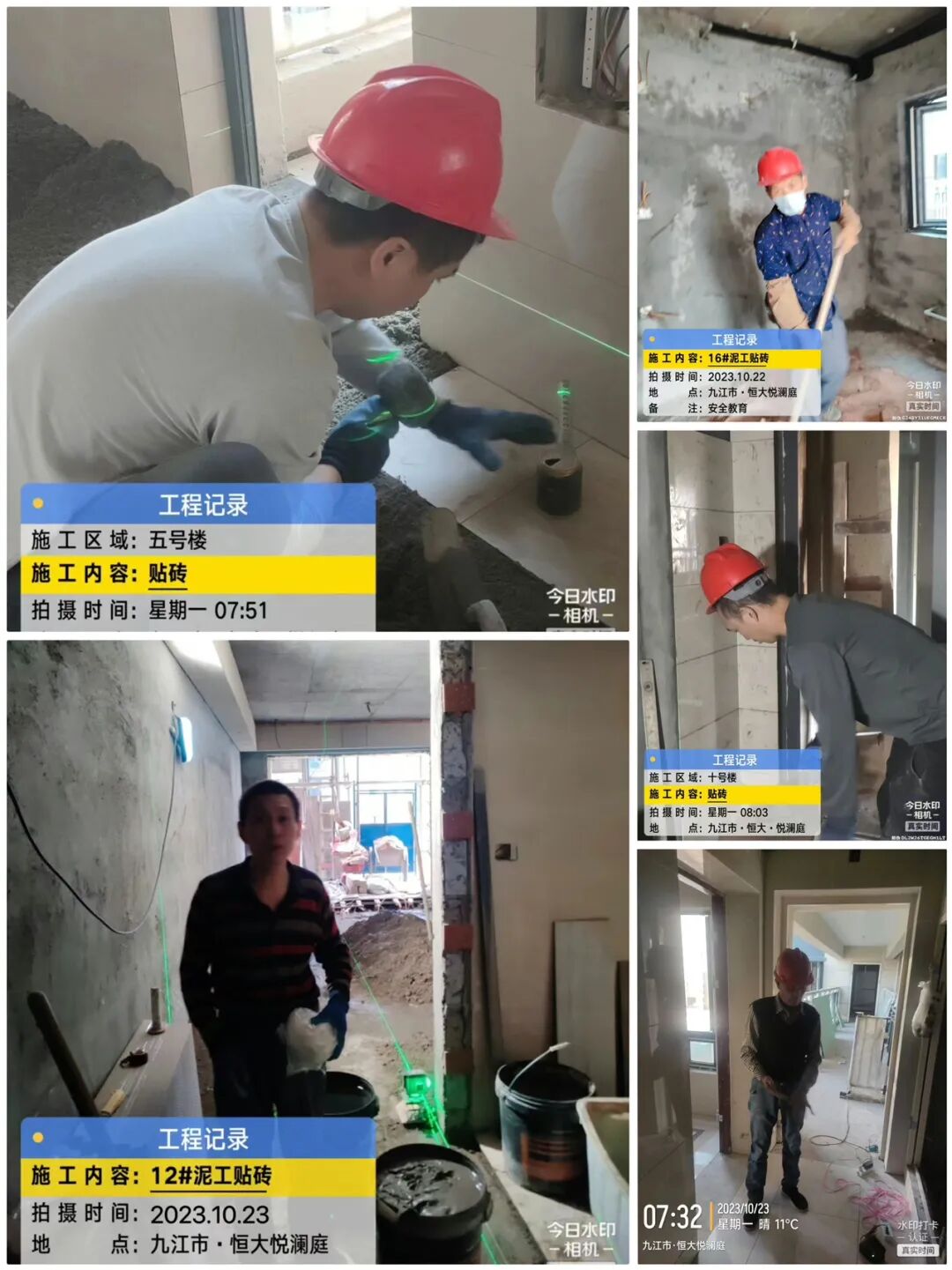 13#楼:室内防水、电工穿线、木工吊顶封板、石膏线、厨卫墙砖24-2层、地砖铺贴24-3层完成